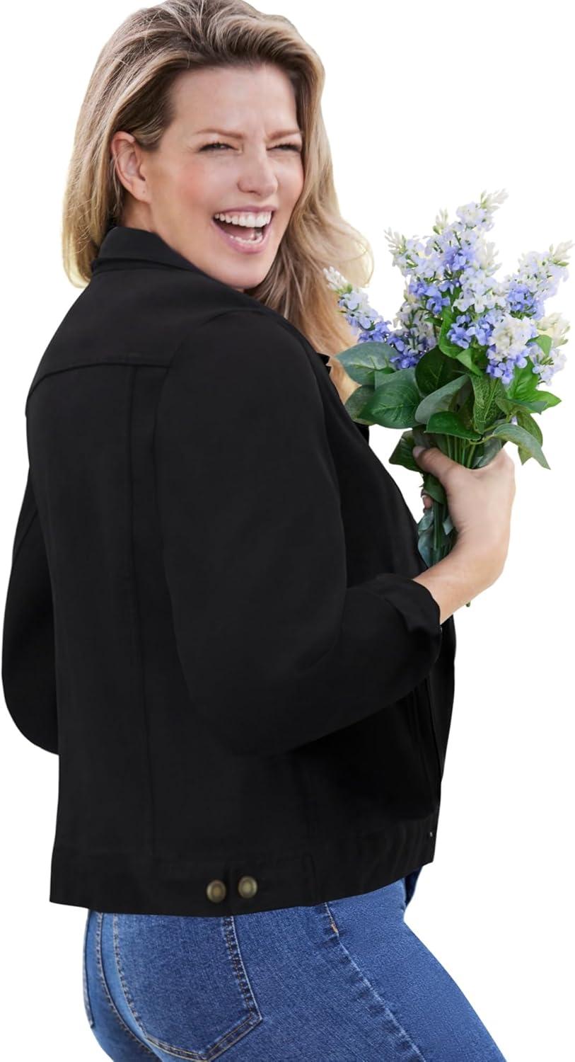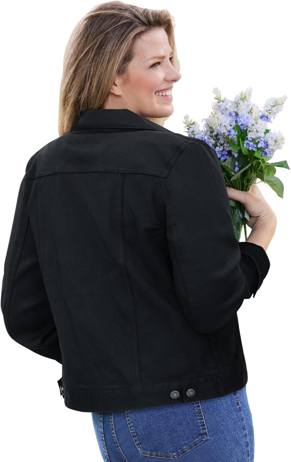 Woman Within Plus Size Stretch Denim Jacket Cropped Jean Jacket(Black)