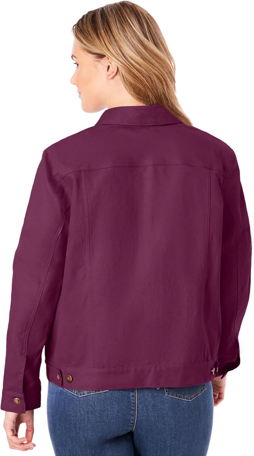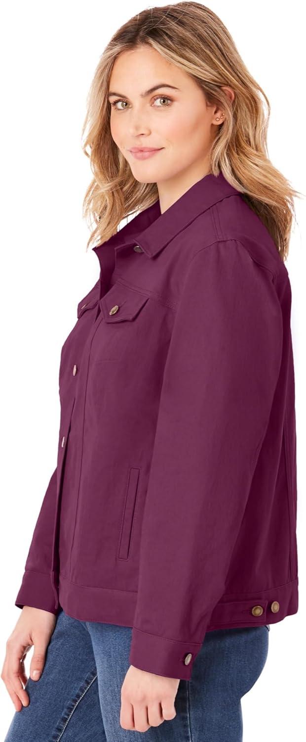 Woman Within Plus Size Stretch Denim Jacket Cropped Jean Jacket(Deep Claret)