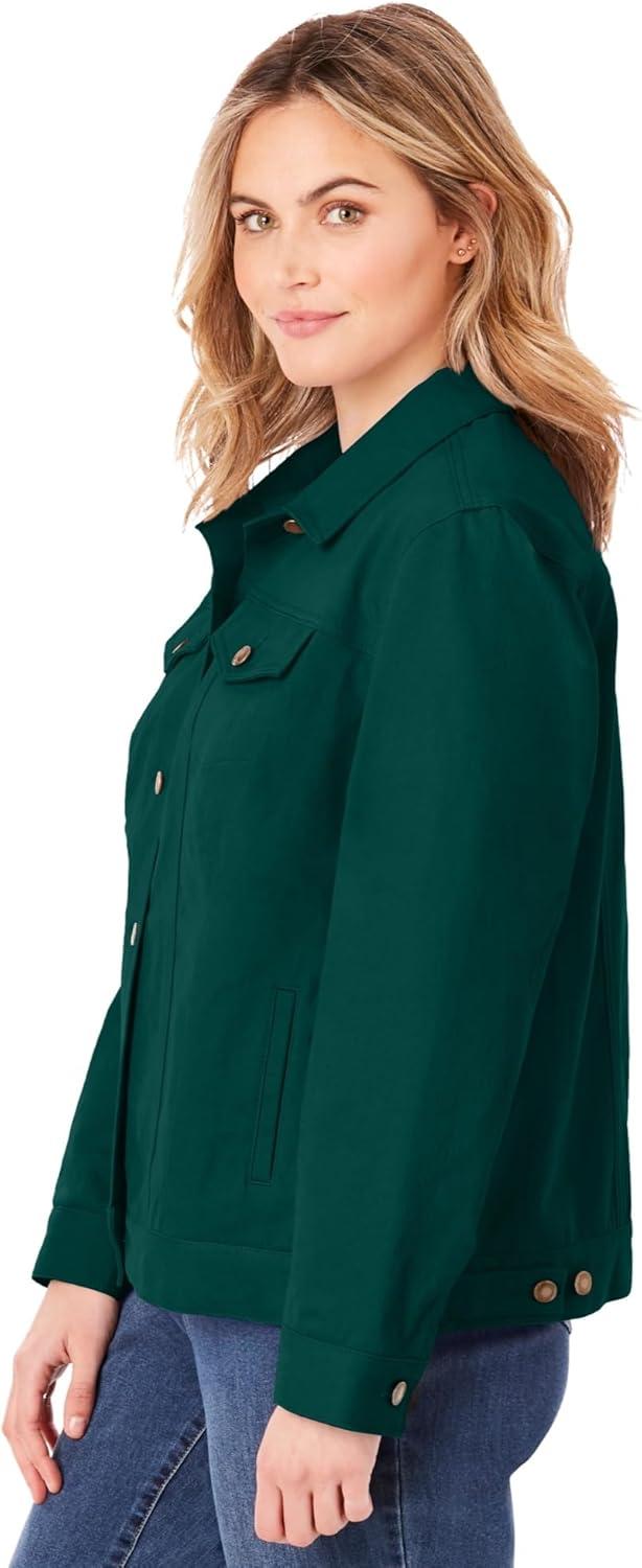 Woman Within Plus Size Stretch Denim Jacket Cropped Jean Jacket(Emerald Green)