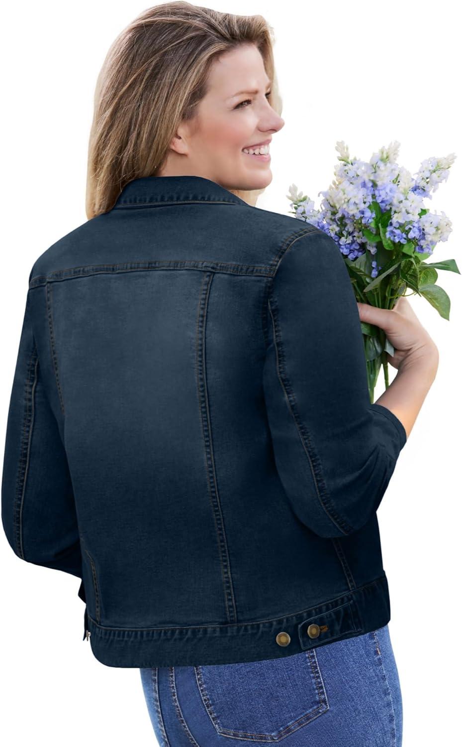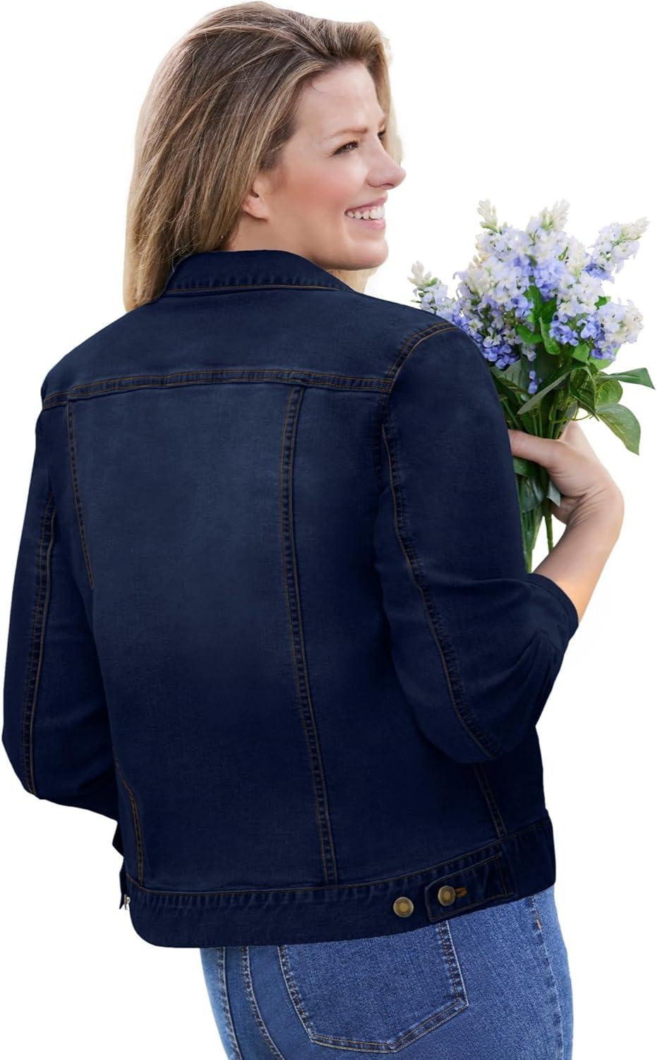 Woman Within Plus Size Stretch Denim Jacket Cropped Jean Jacket(Indigo)