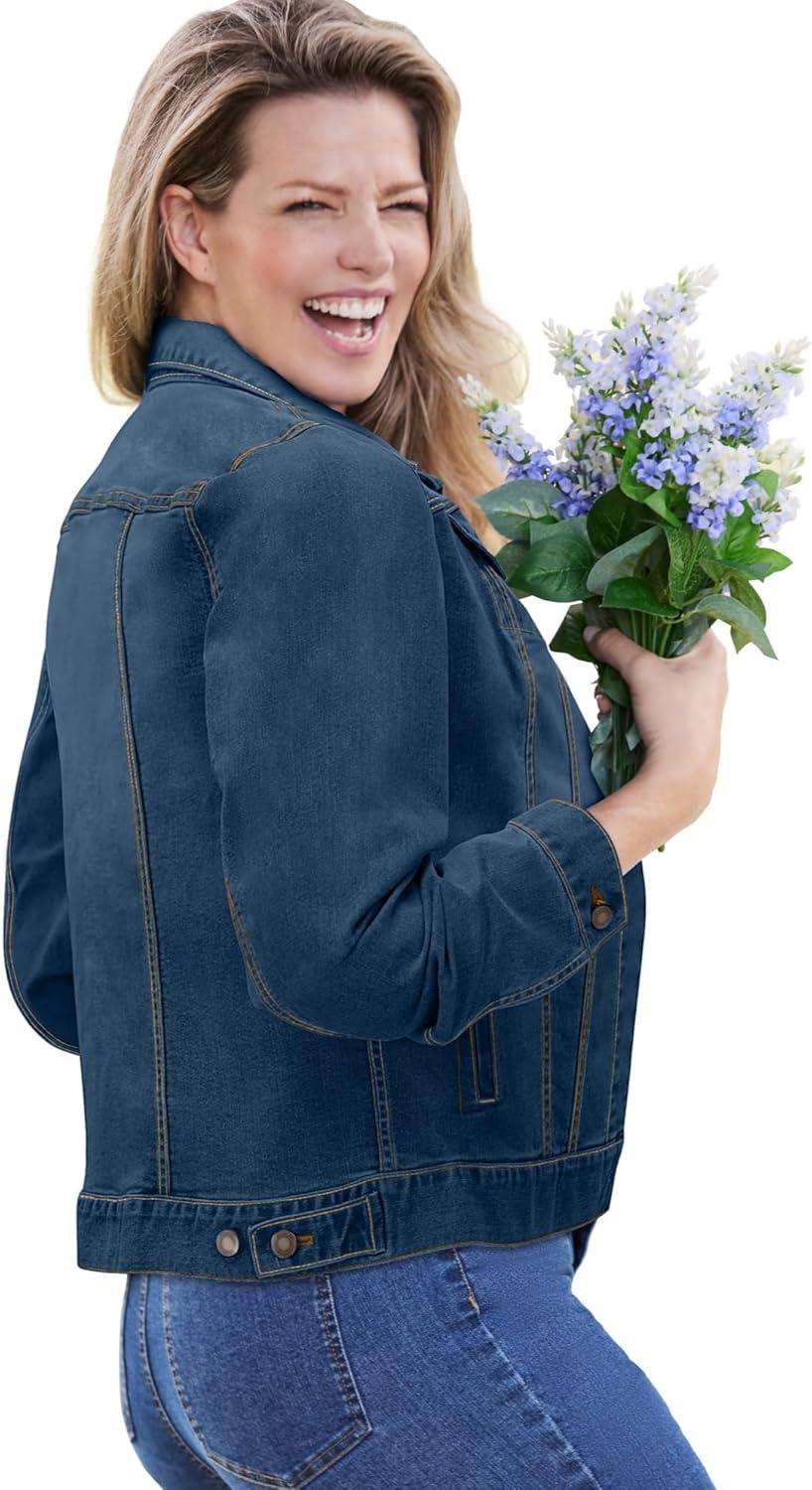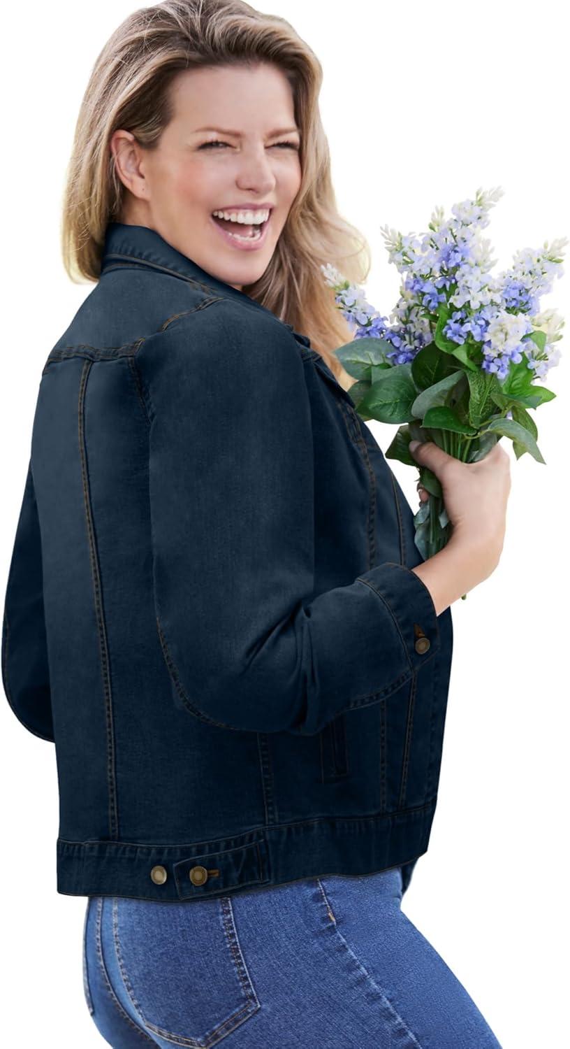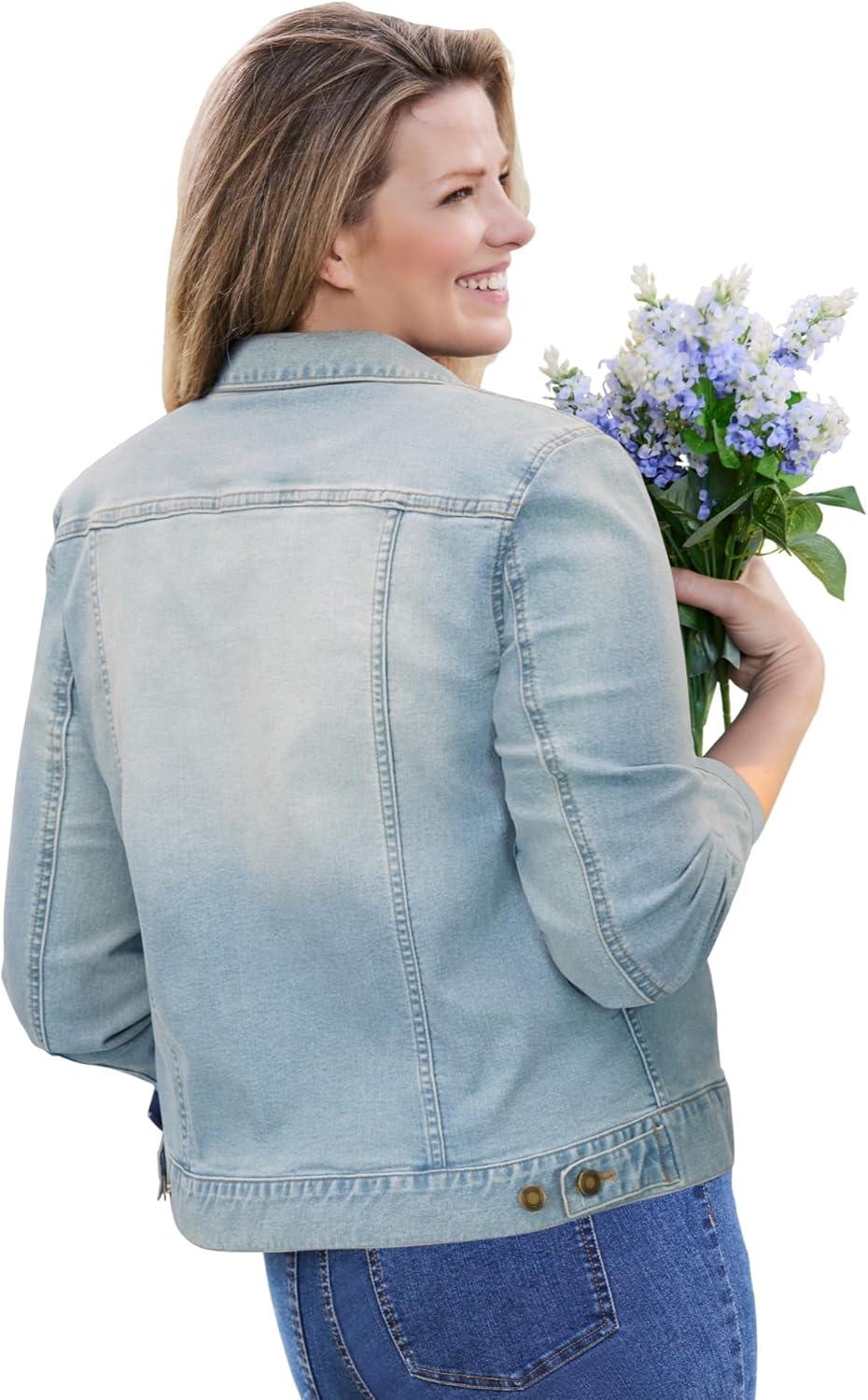 Woman Within Plus Size Stretch Denim Jacket Cropped Jean Jacket(Medium Stonewash)