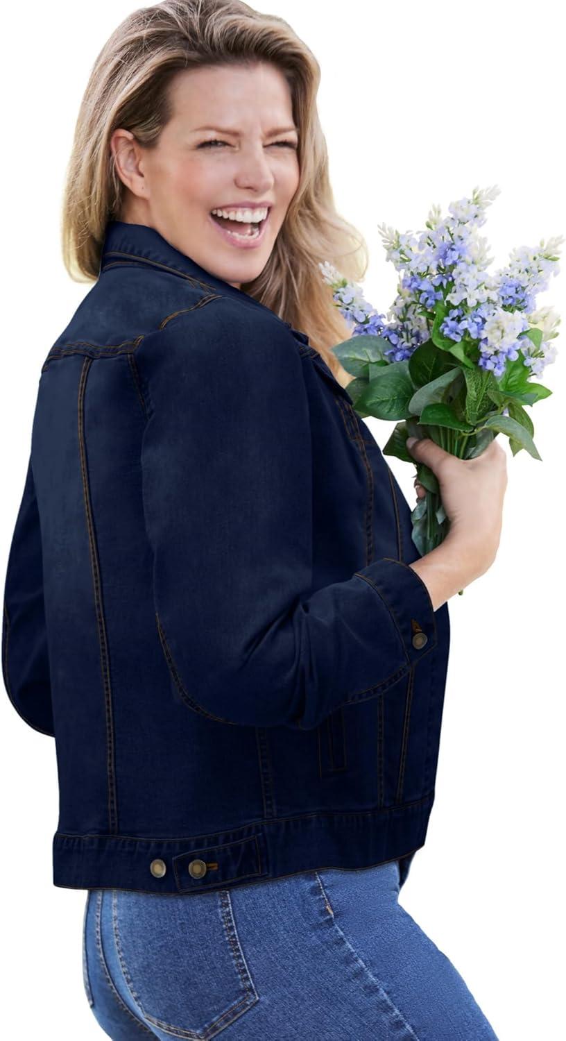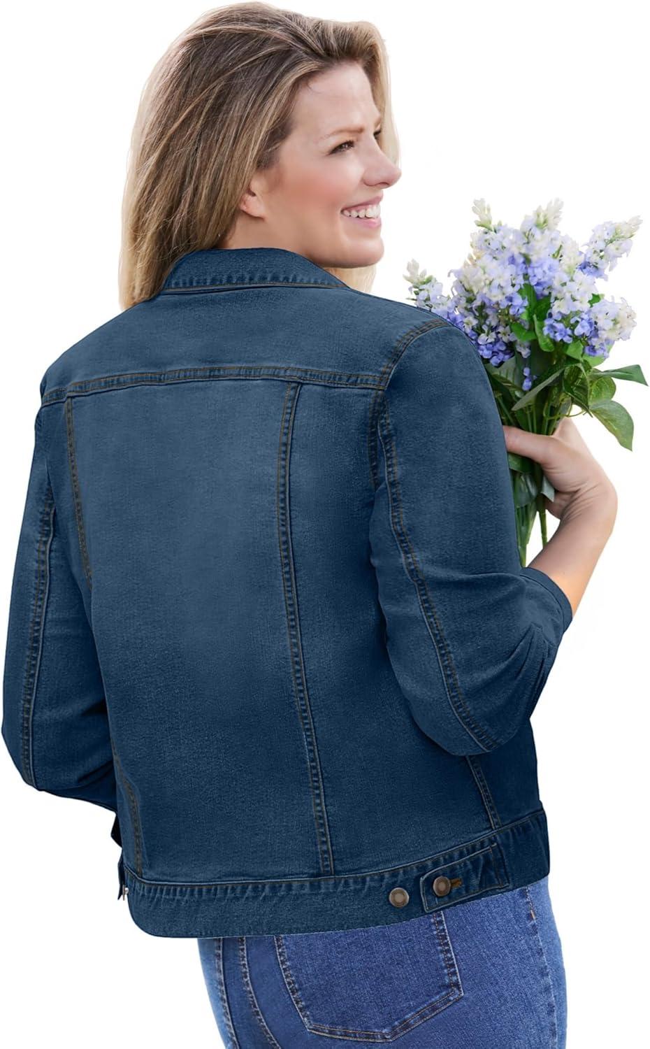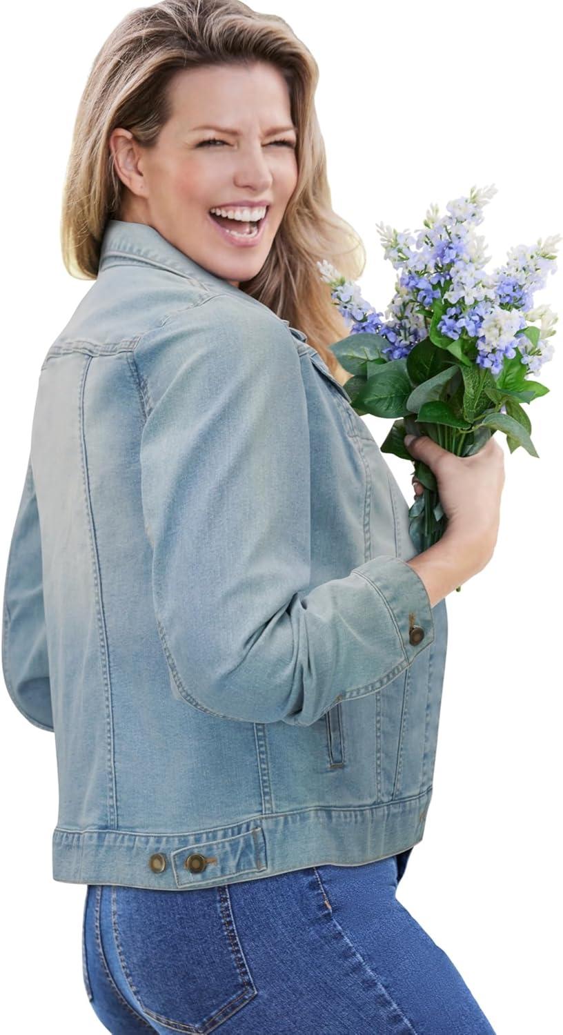 Woman Within Plus Size Stretch Denim Jacket Cropped Jean Jacket(Medium Stonewash)