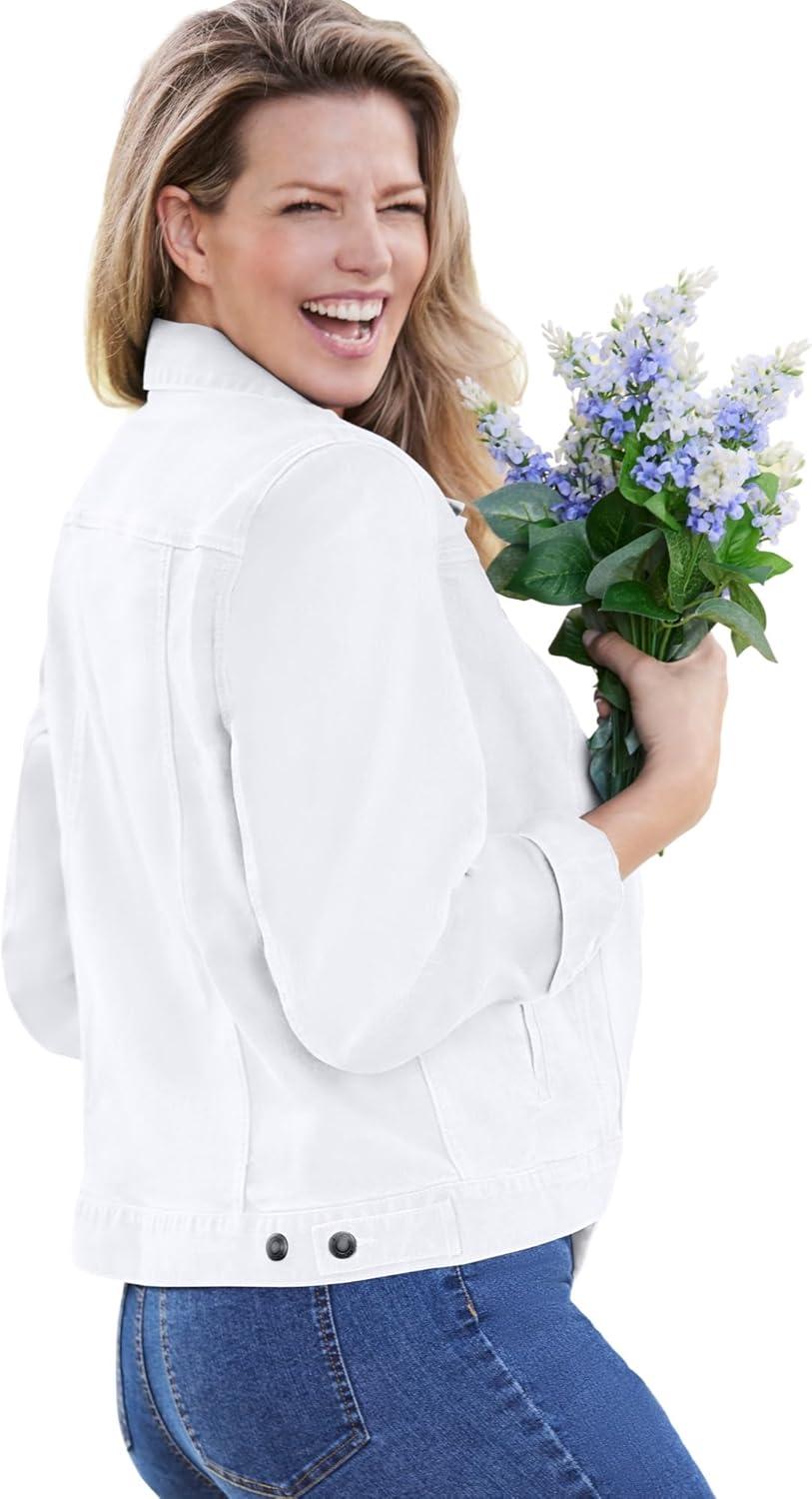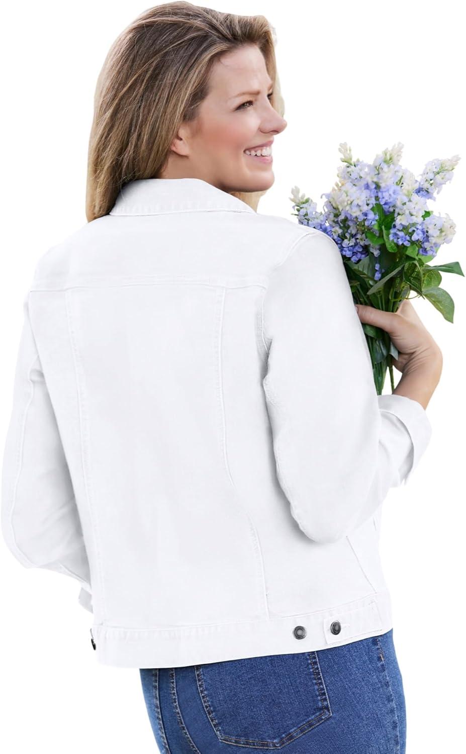 Woman Within Plus Size Stretch Denim Jacket Cropped Jean Jacket(White)