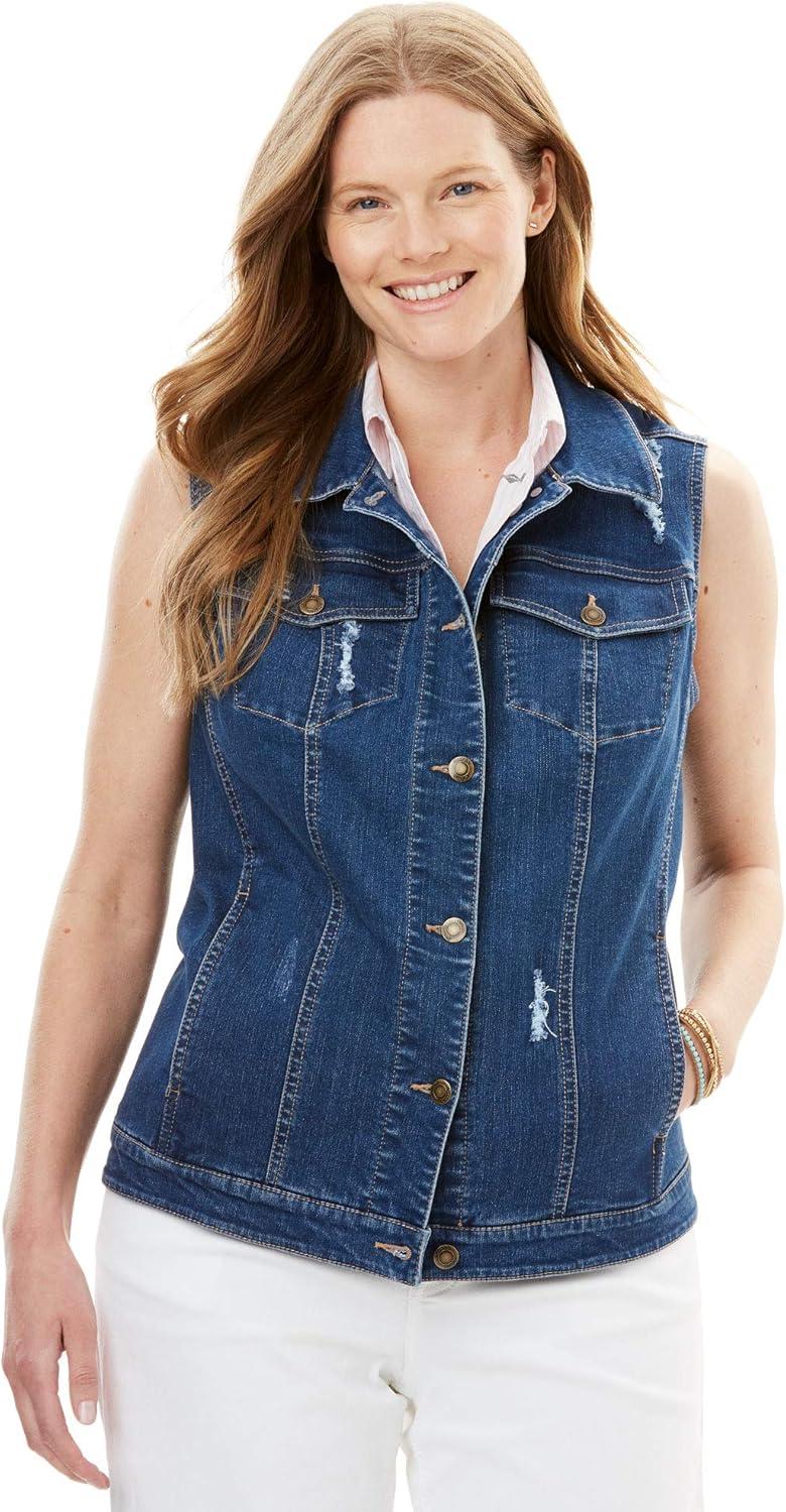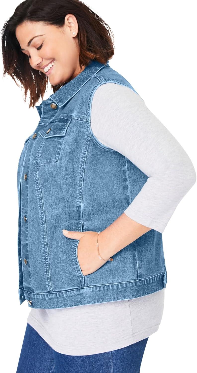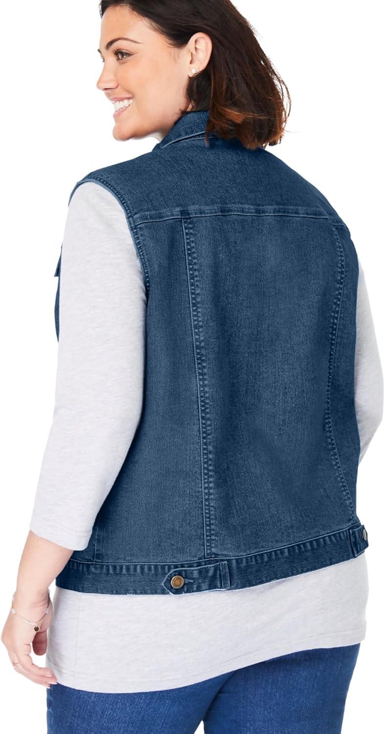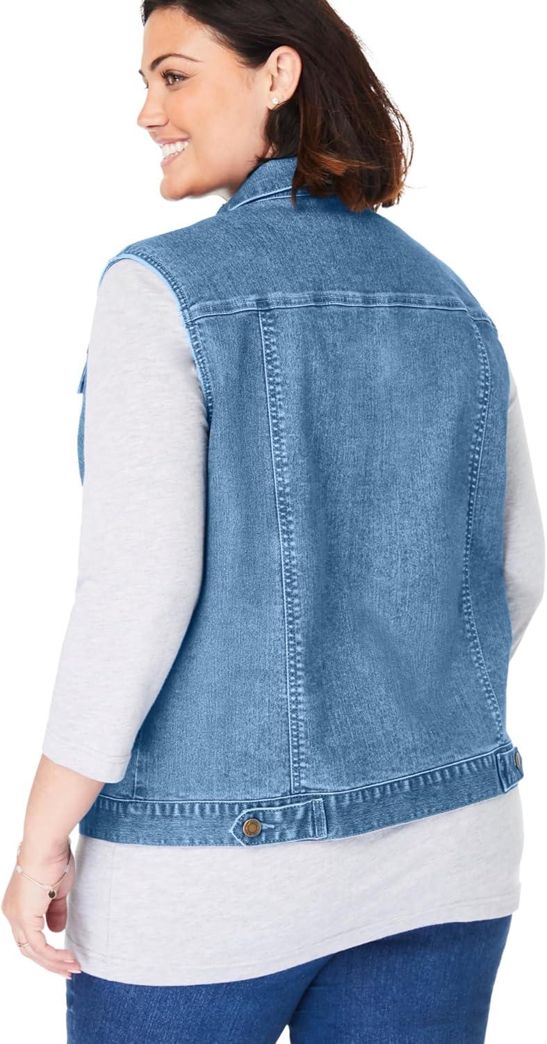 Woman Within Plus Size Stretch Denim Vest Jean Vest(Medium Stonewash)