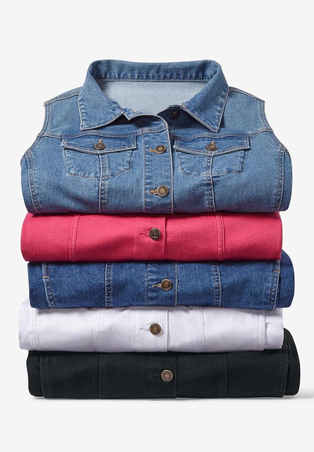 Woman Within Plus Size Stretch Denim Vest Jean Vest(Raspberry Sorbet)