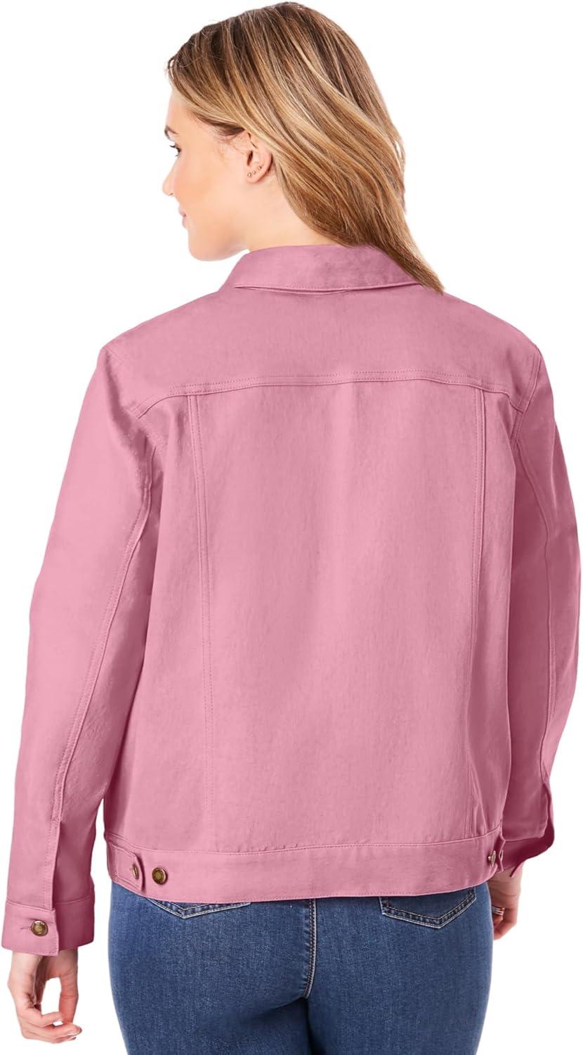 Woman Within Plus Size Stretch Denim Jacket Cropped Jean Jacket(Raspberry Sorbet)
