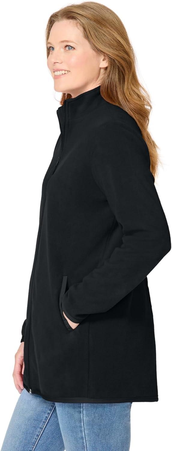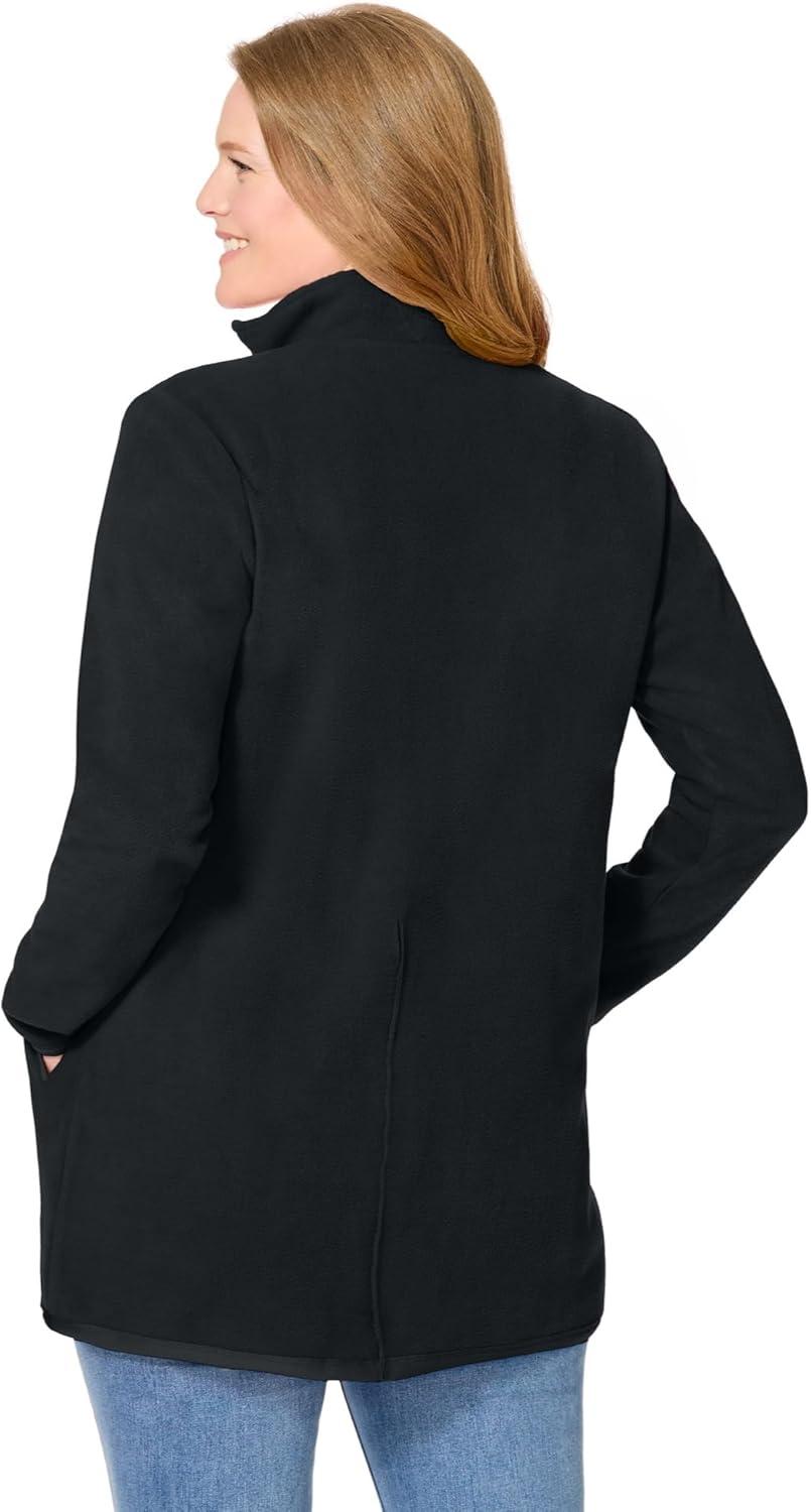 Woman Within Plus Size Zip-Front Microfleece Jacket Long Oversized Fleece(Black)