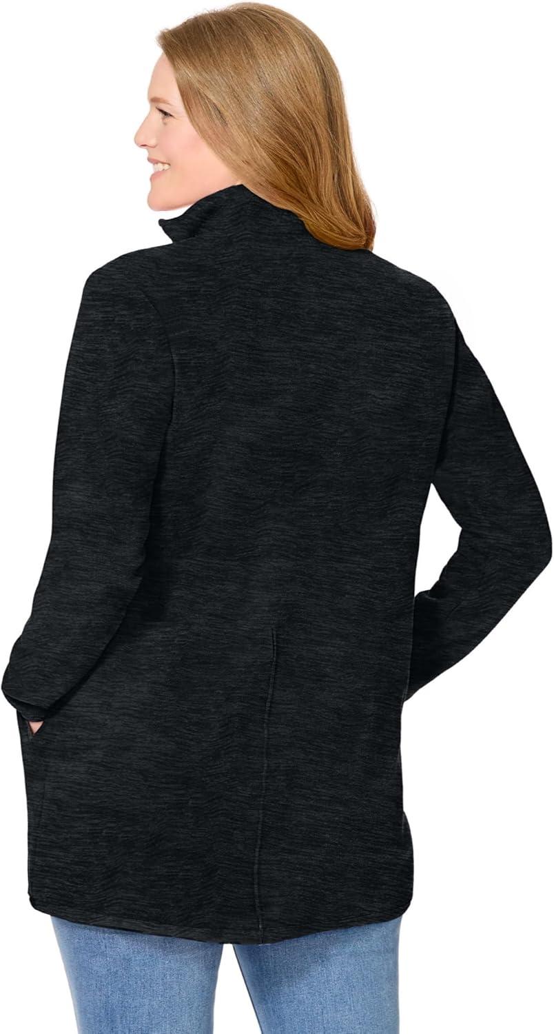 Woman Within Plus Size Zip-Front Microfleece Jacket Long Oversized Fleece(Black Marled)