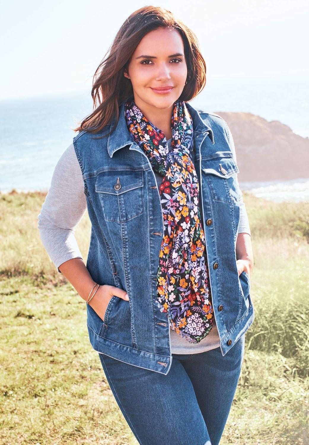 Woman Within Plus Size Stretch Denim Vest Jean Vest(White)
