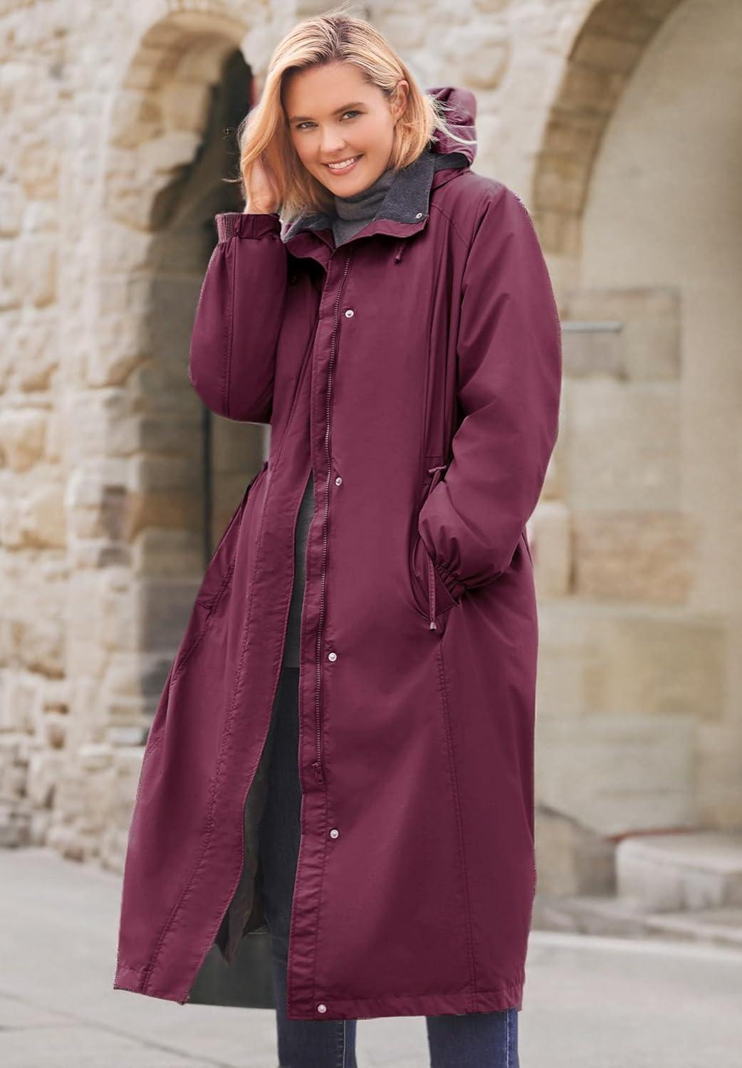 Woman Within Plus Size Long Hooded Taslon Jacket(Deep Claret)