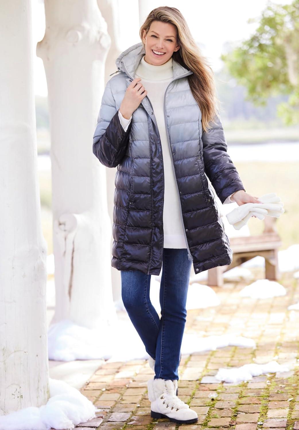 • Woman Within Plus Size Long Packable Puffer Jacket(Black Ombre)