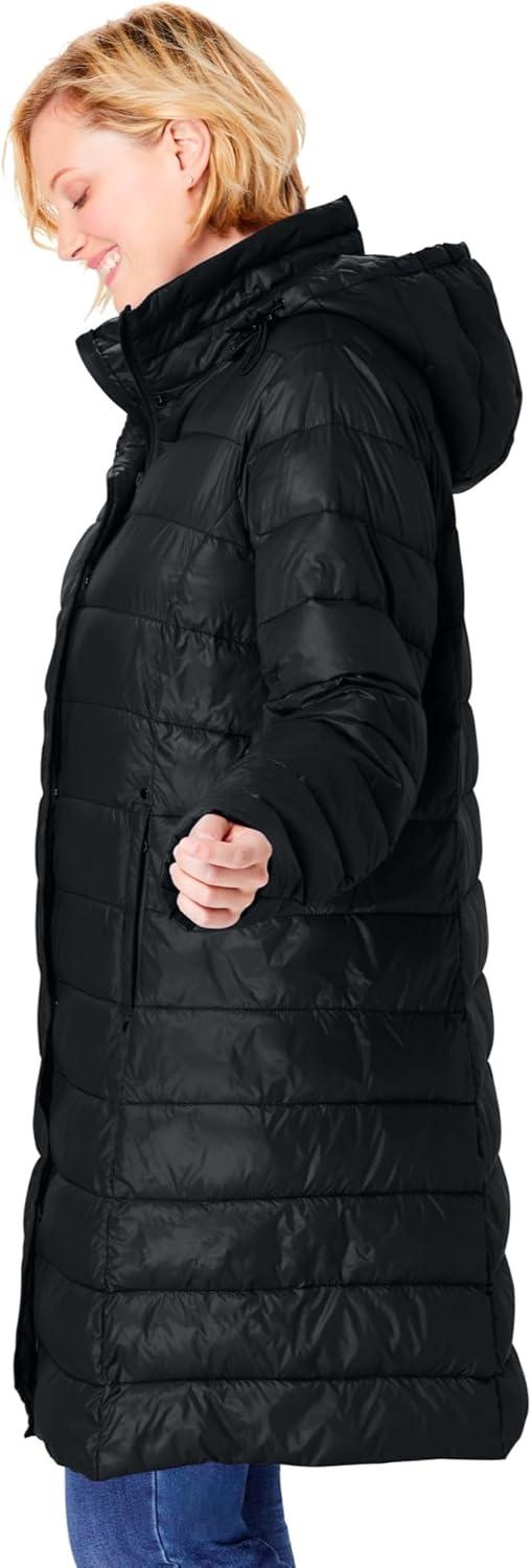 Woman Within Plus Size Long Packable Puffer Jacket(Black)