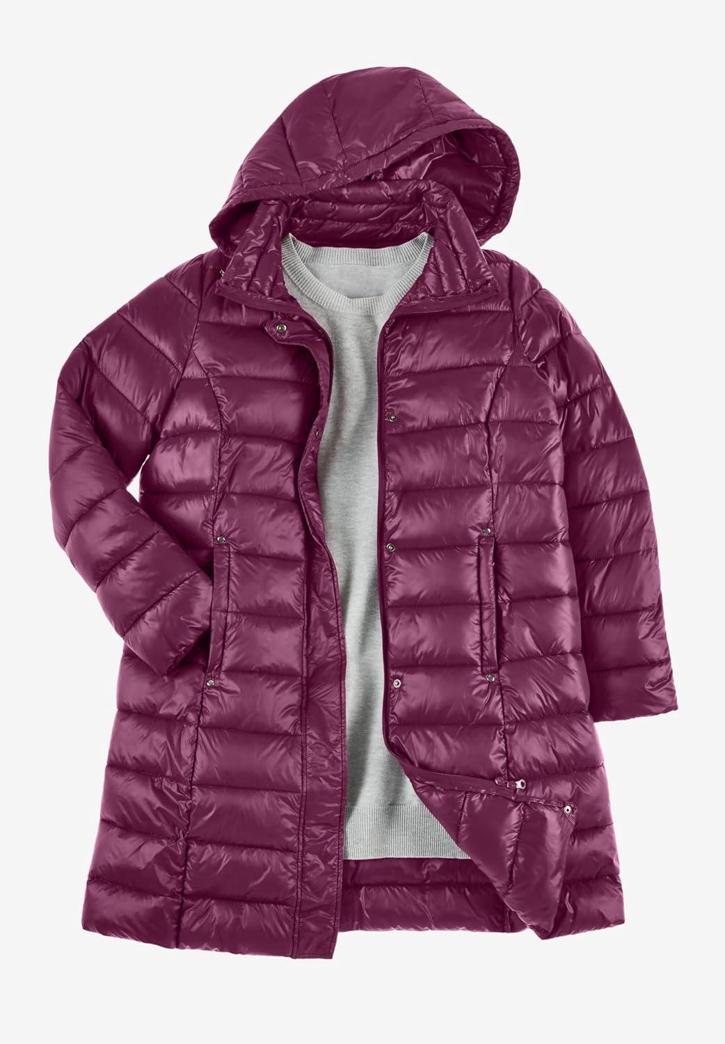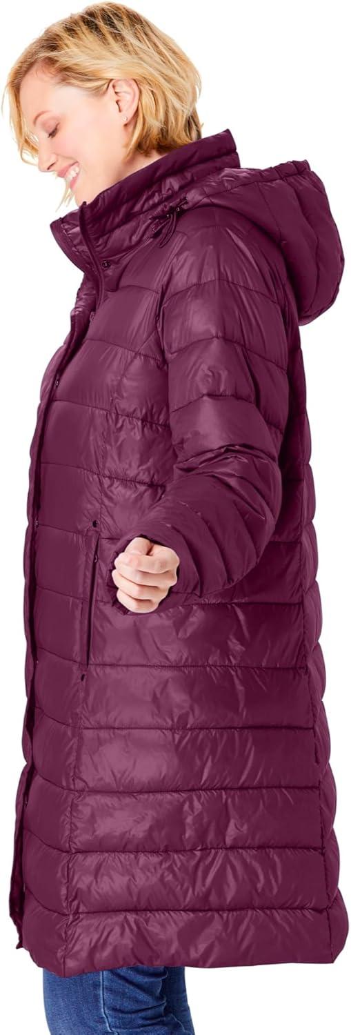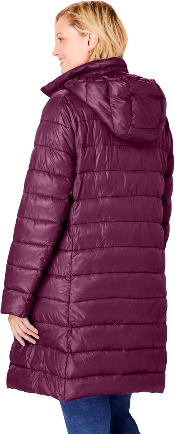Woman Within Plus Size Long Packable Puffer Jacket(Deep Claret)
