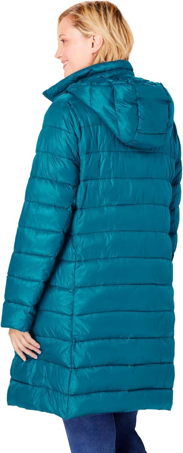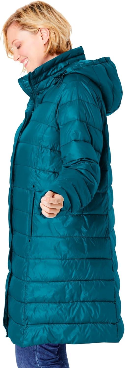 Woman Within Plus Size Long Packable Puffer Jacket(Deep Teal)