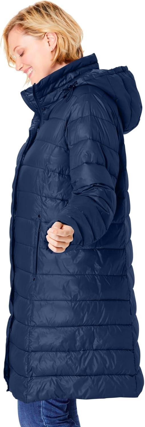 Woman Within Plus Size Long Packable Puffer Jacket(Navy)