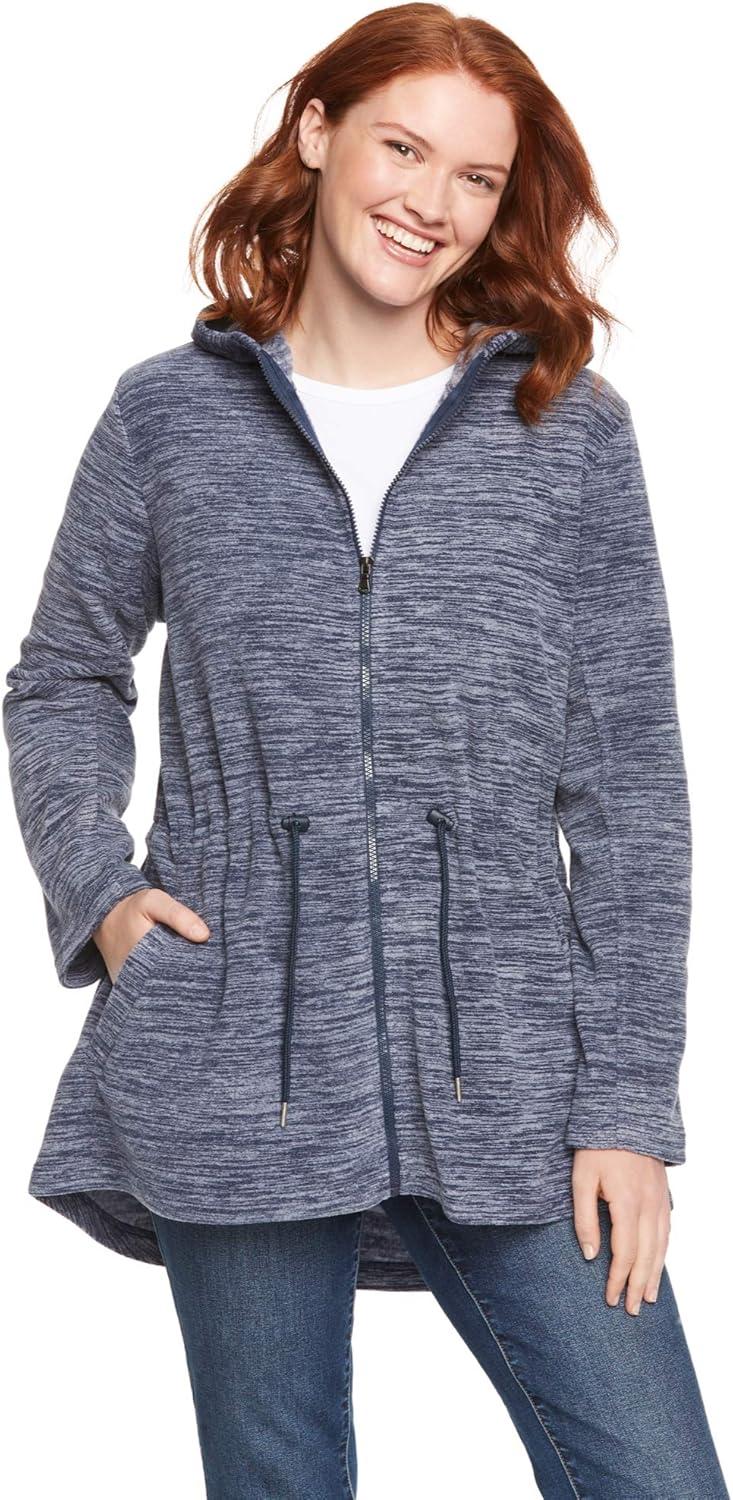 Woman Within Plus Size Microfleece Anorak Jacket Oversized Fleece Zip-Up Jacket(Evening Blue Marled)