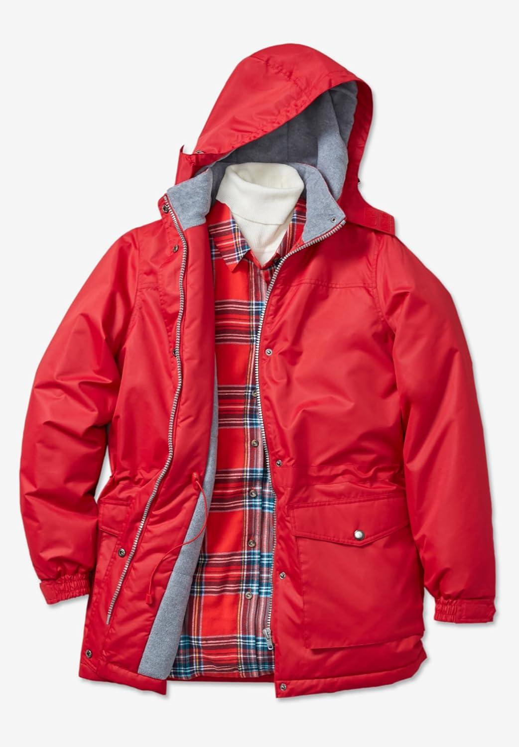• Woman Within Plus Size Microfiber Parka(Classic Red)