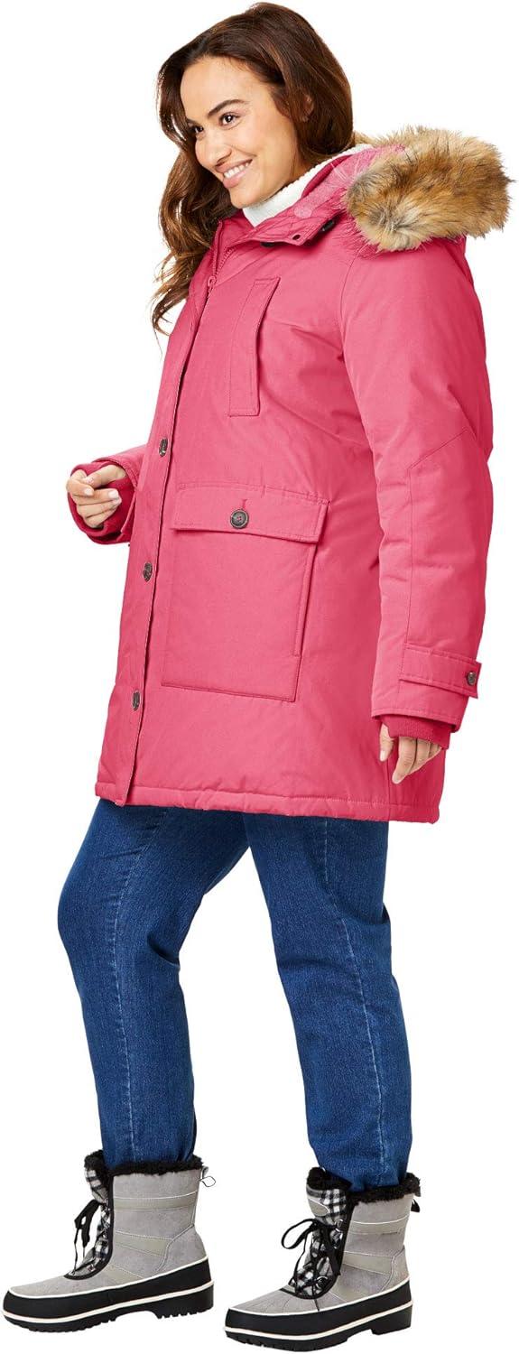 Woman Within Plus Size Arctic Parka Jacket & Hood 40″ Knee Length Down Blend Long Winter Coat(Classic Red)