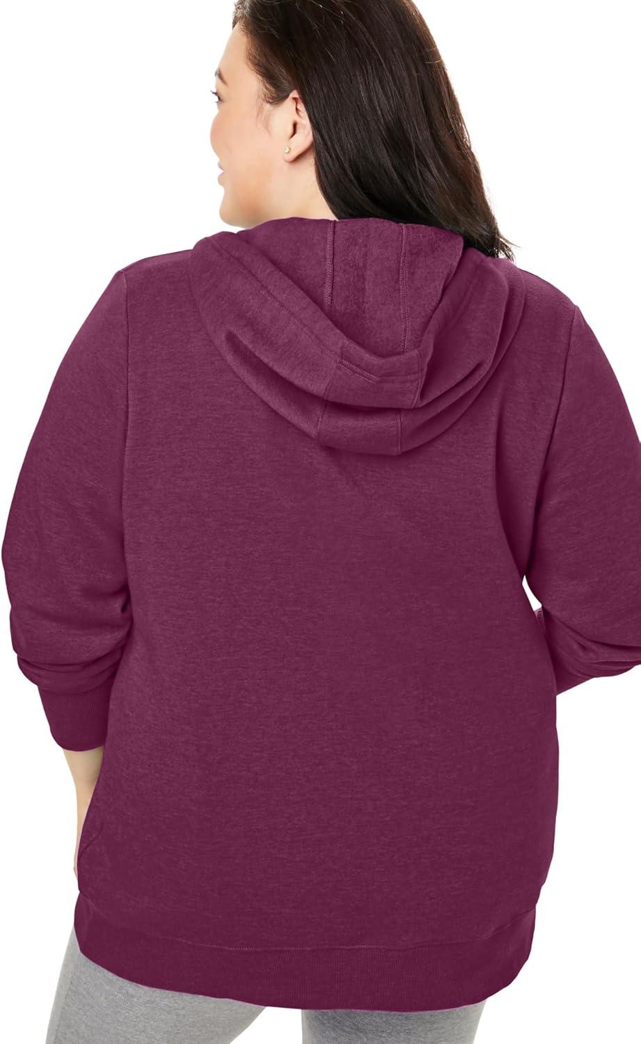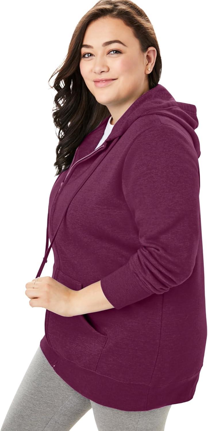 Woman Within Plus Size Better Fleece Zip-Front Hoodie Long Oversized Sweatshirt(Deep Claret)