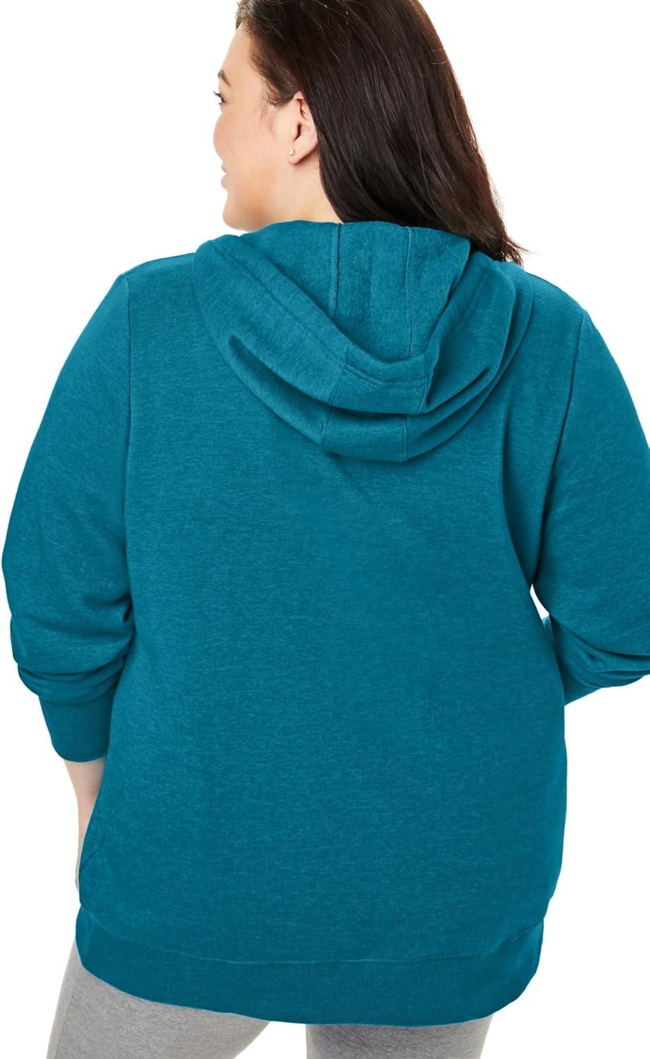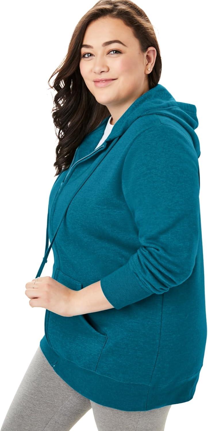 Woman Within Plus Size Better Fleece Zip-Front Hoodie Long Oversized Sweatshirt(Deep Teal)
