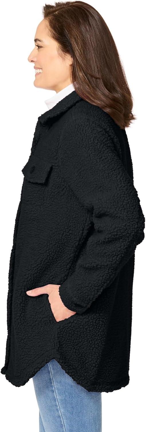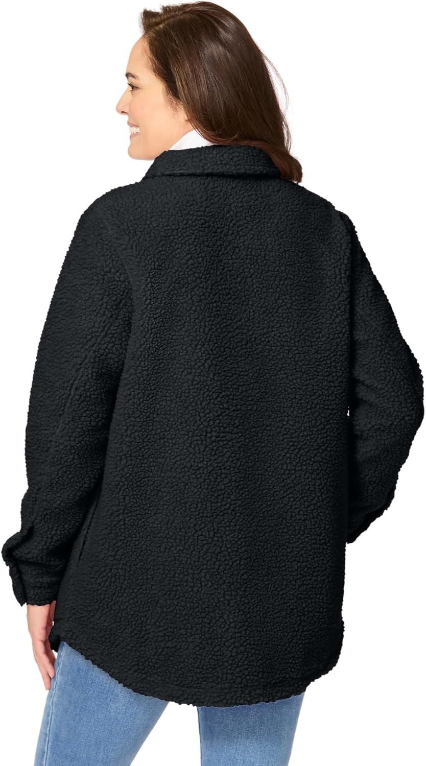• Woman Within Plus Size Berber Shirt Jacket Long Oversized Fuzzy Fleece Shacket(Black)