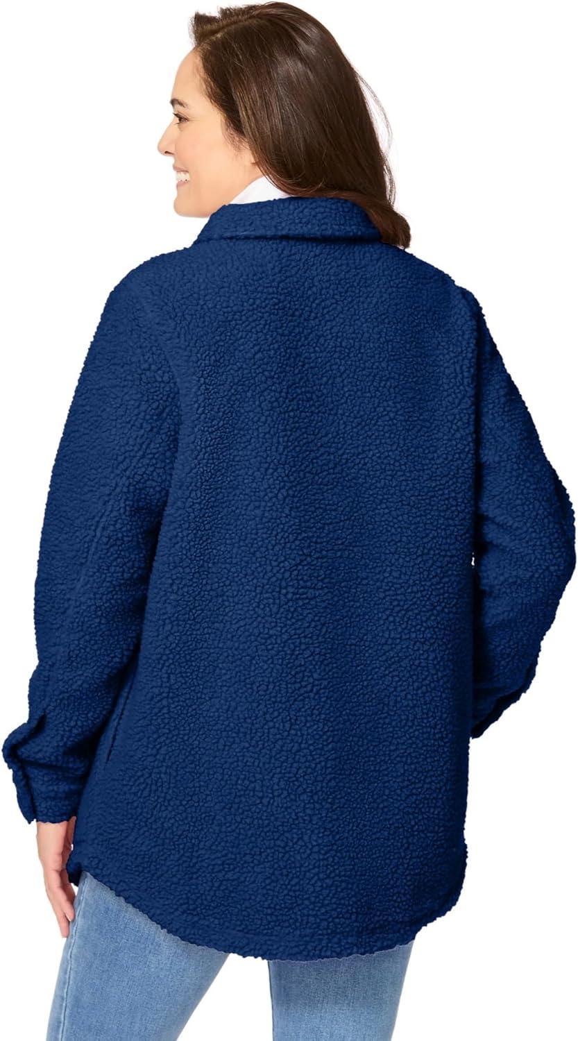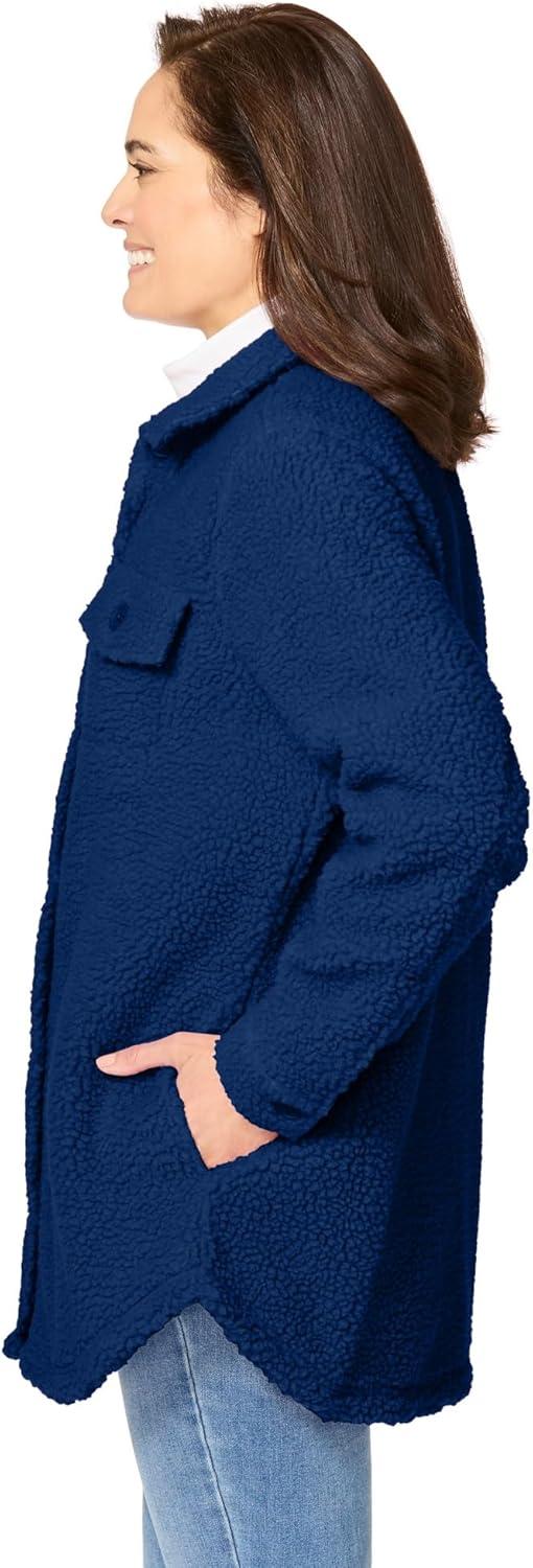 Woman Within Plus Size Berber Shirt Jacket Long Oversized Fuzzy Fleece Shacket(Evening Blue)