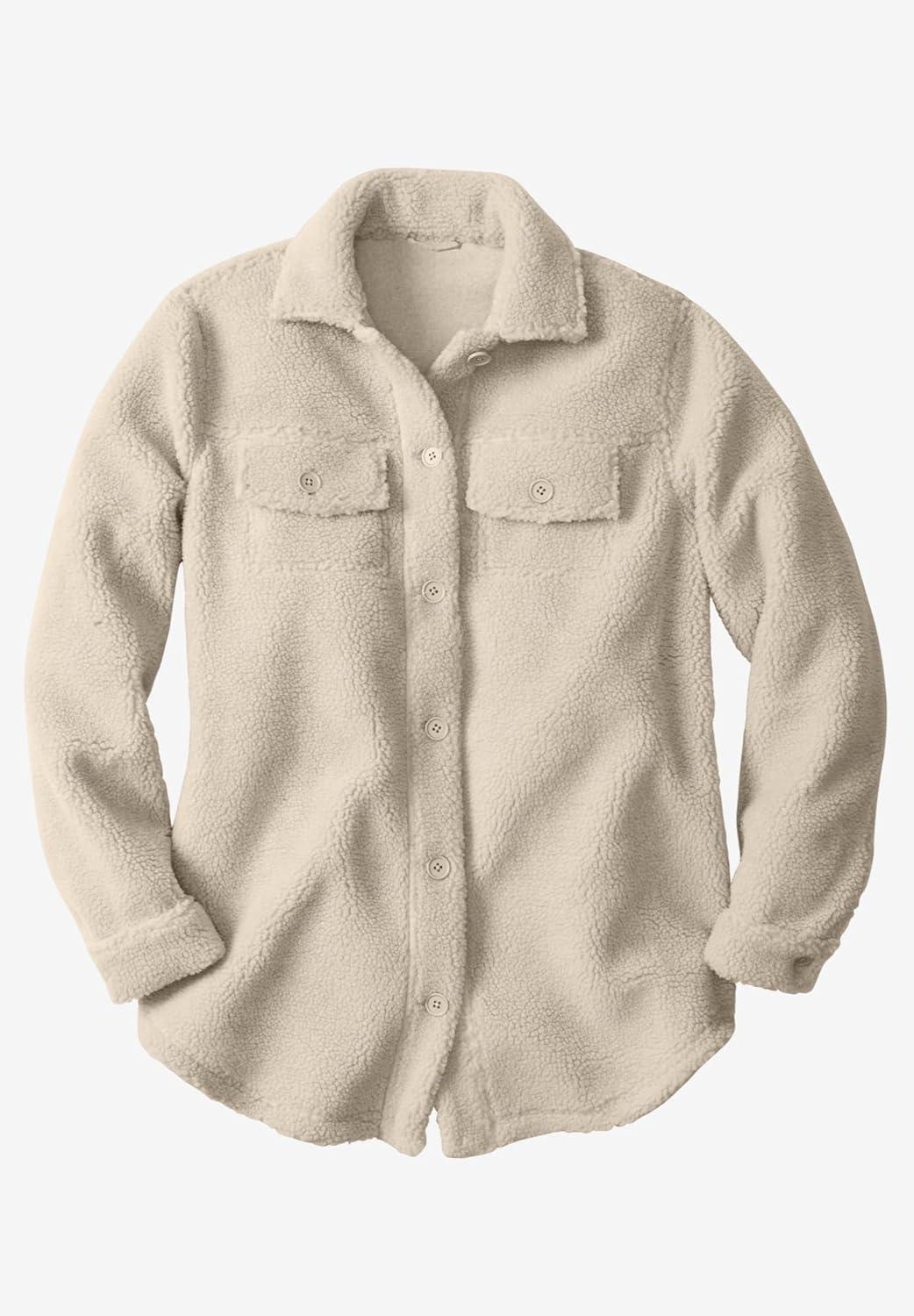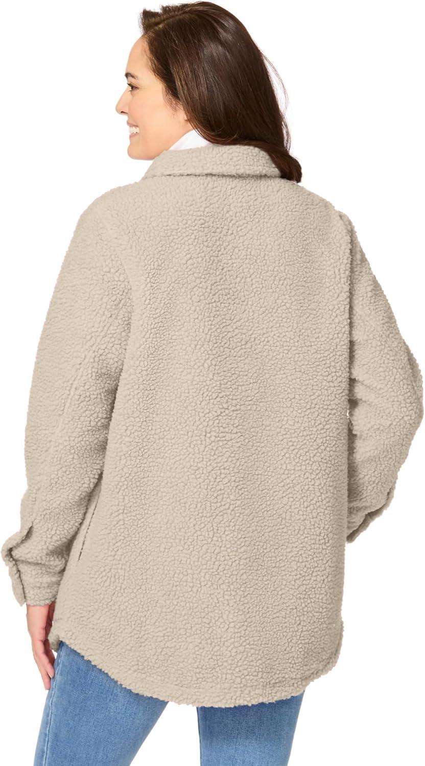 • Woman Within Plus Size Berber Shirt Jacket Long Oversized Fuzzy Fleece Shacket(Natural Khaki)