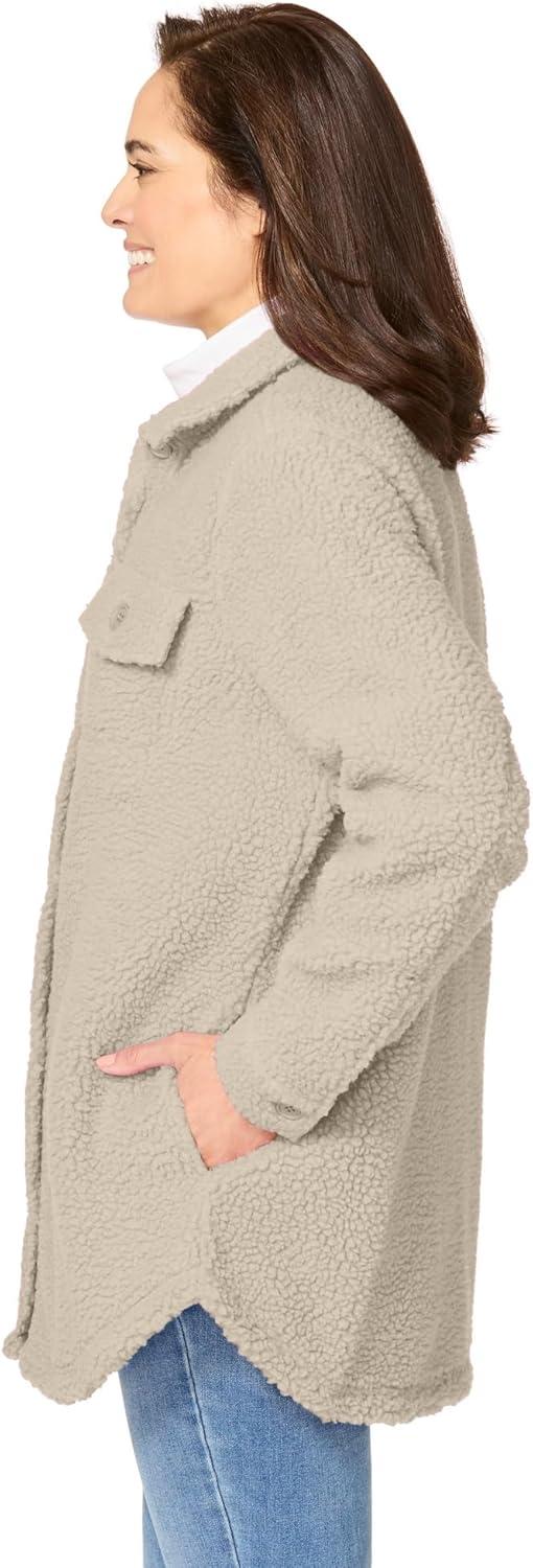 Woman Within Plus Size Berber Shirt Jacket Long Oversized Fuzzy Fleece Shacket(Natural Khaki)