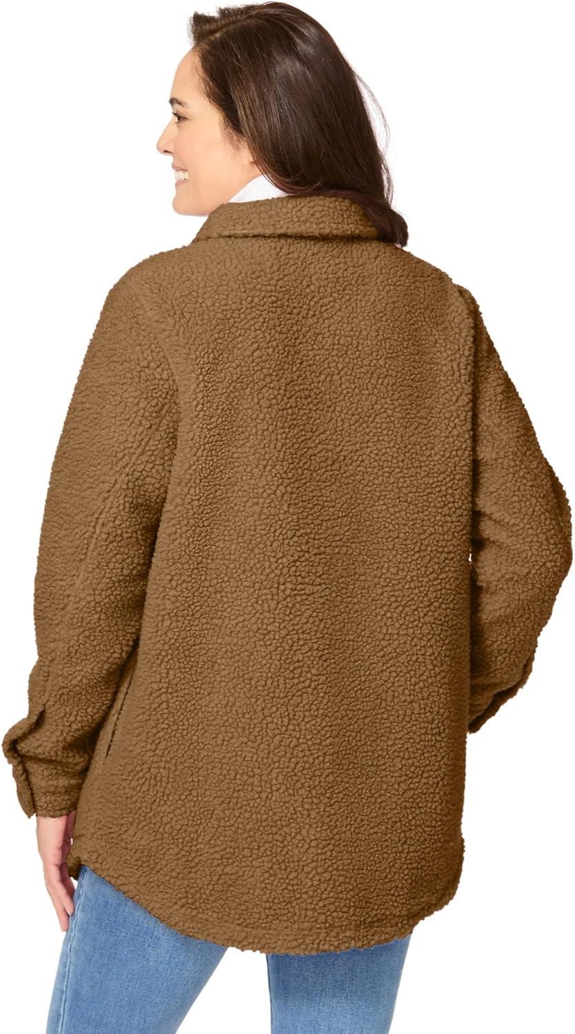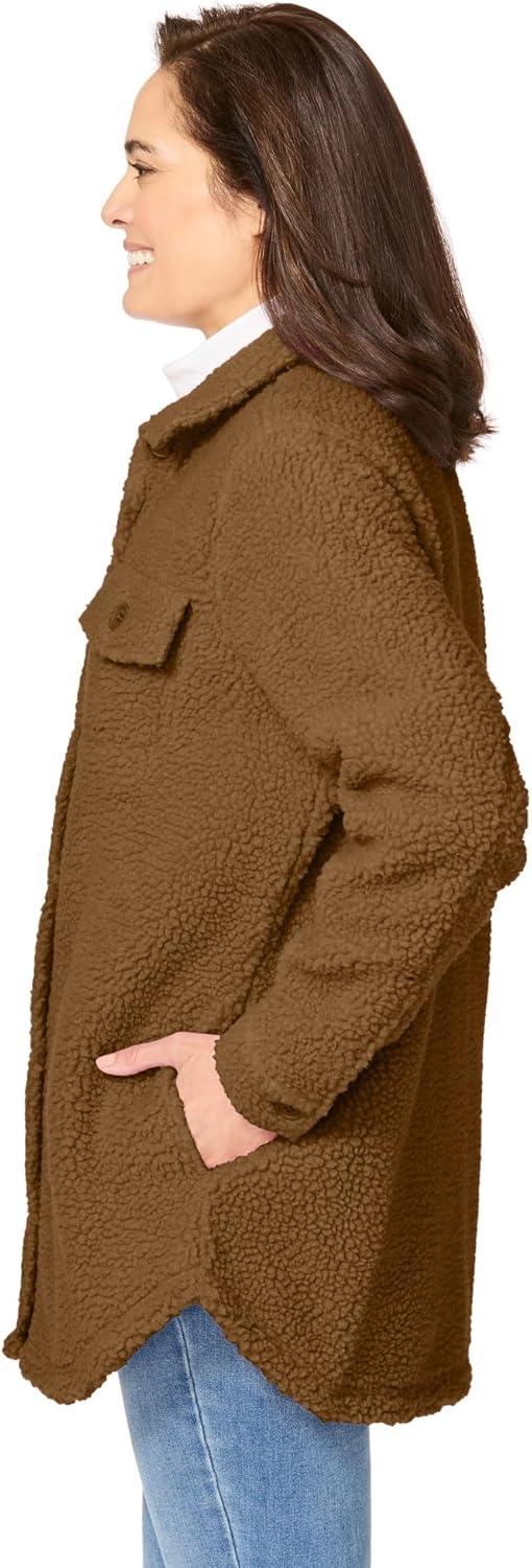 • Woman Within Plus Size Berber Shirt Jacket Long Oversized Fuzzy Fleece Shacket(Toffee)