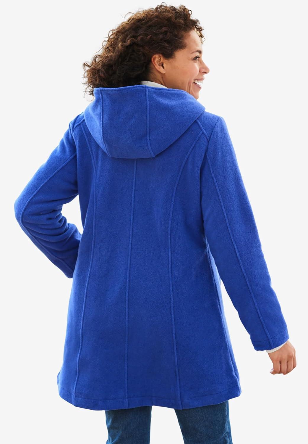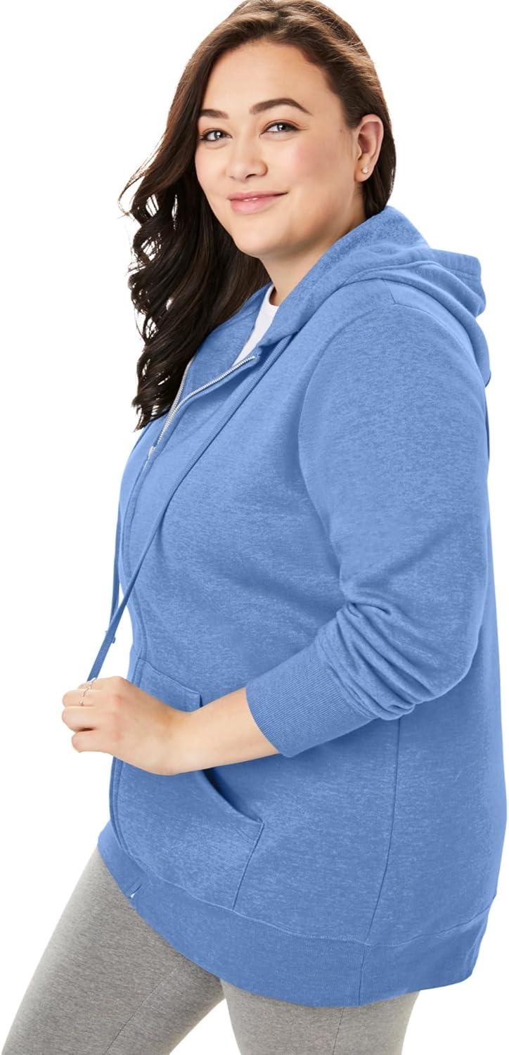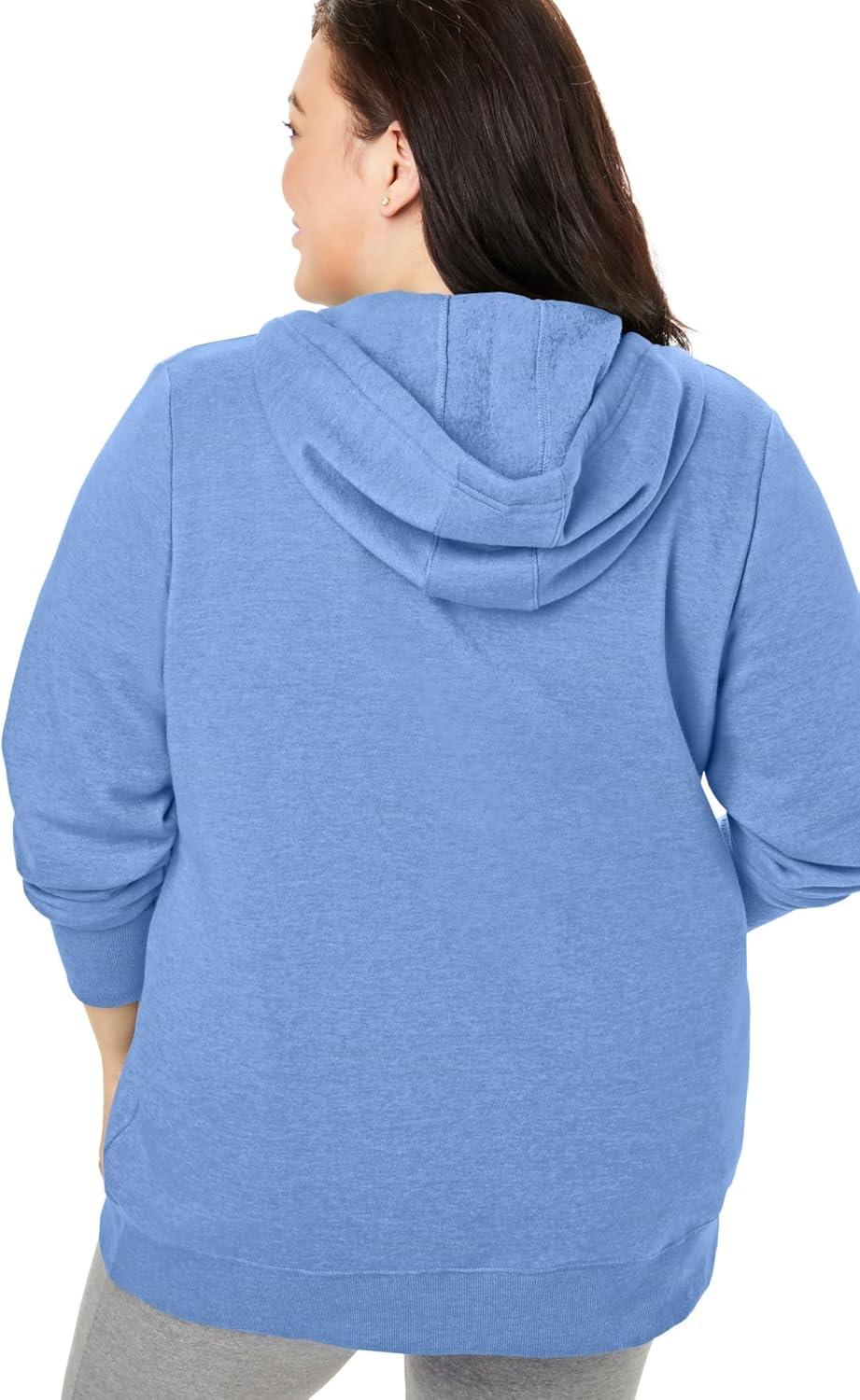 Woman Within Plus Size Better Fleece Zip-Front Hoodie Long Oversized Sweatshirt(French Blue)
