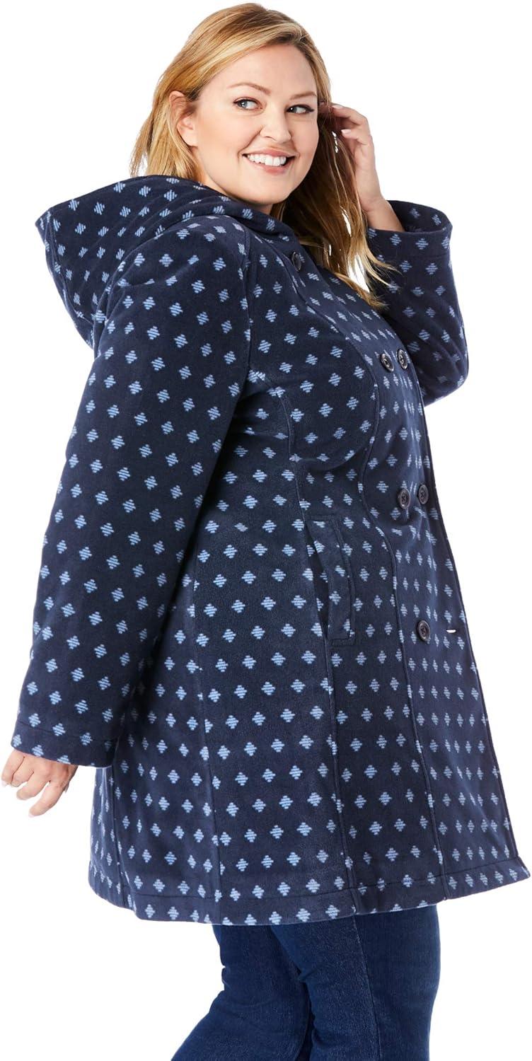 Woman Within Plus Size Double-Breasted Hooded Fleece Peacoat(Black)