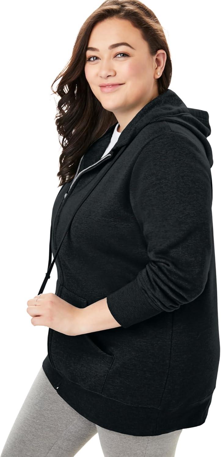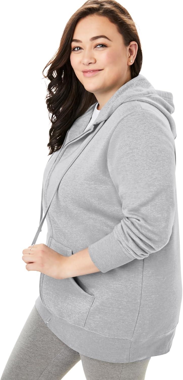 Woman Within Plus Size Better Fleece Zip-Front Hoodie Long Oversized Sweatshirt(Heather Grey)