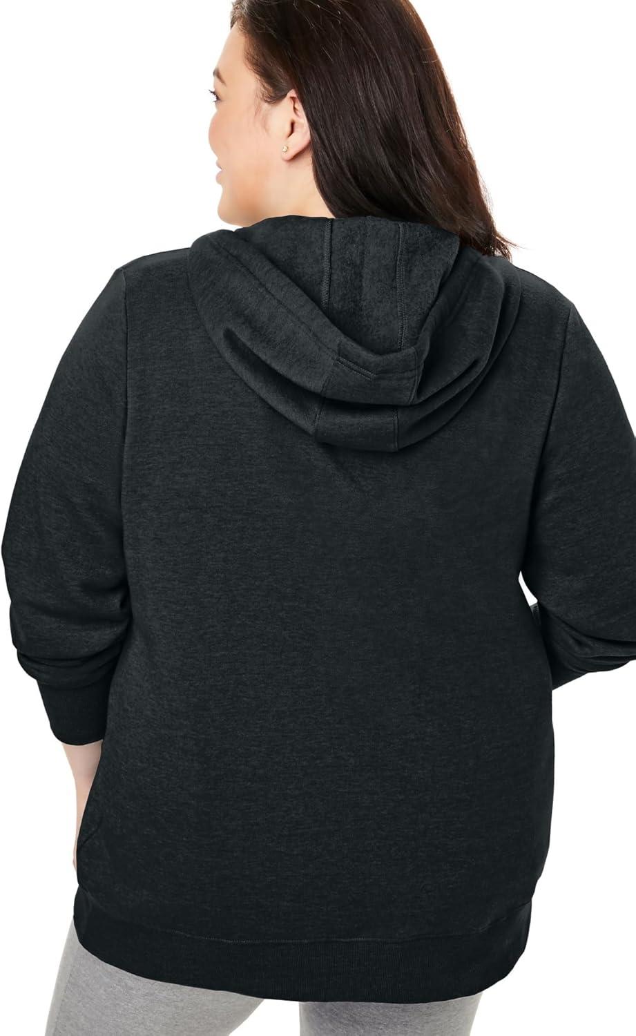 Woman Within Plus Size Better Fleece Zip-Front Hoodie Long Oversized Sweatshirt(Heather Charcoal)