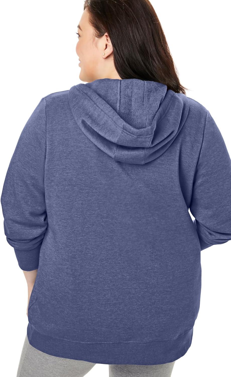 Woman Within Plus Size Better Fleece Zip-Front Hoodie Long Oversized Sweatshirt(Soft Iris)