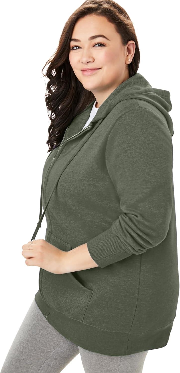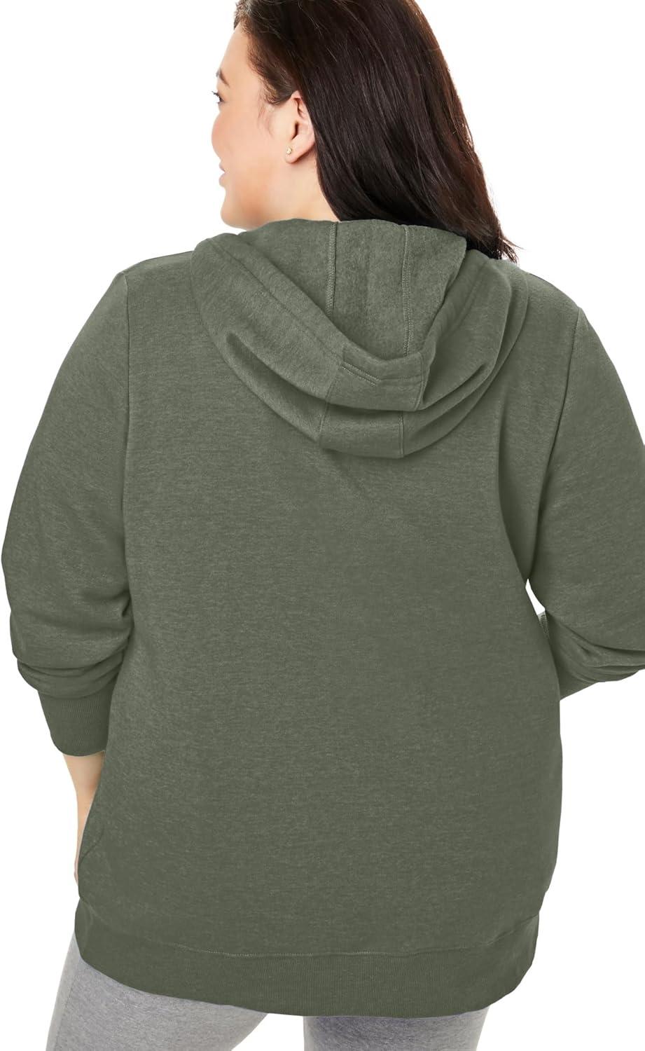 Woman Within Plus Size Better Fleece Zip-Front Hoodie Long Oversized Sweatshirt(Olive Green)