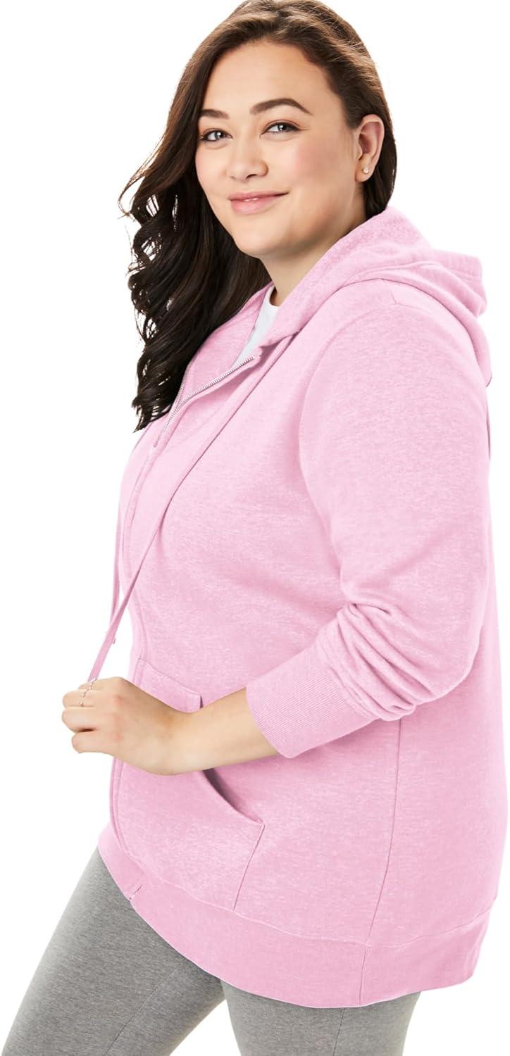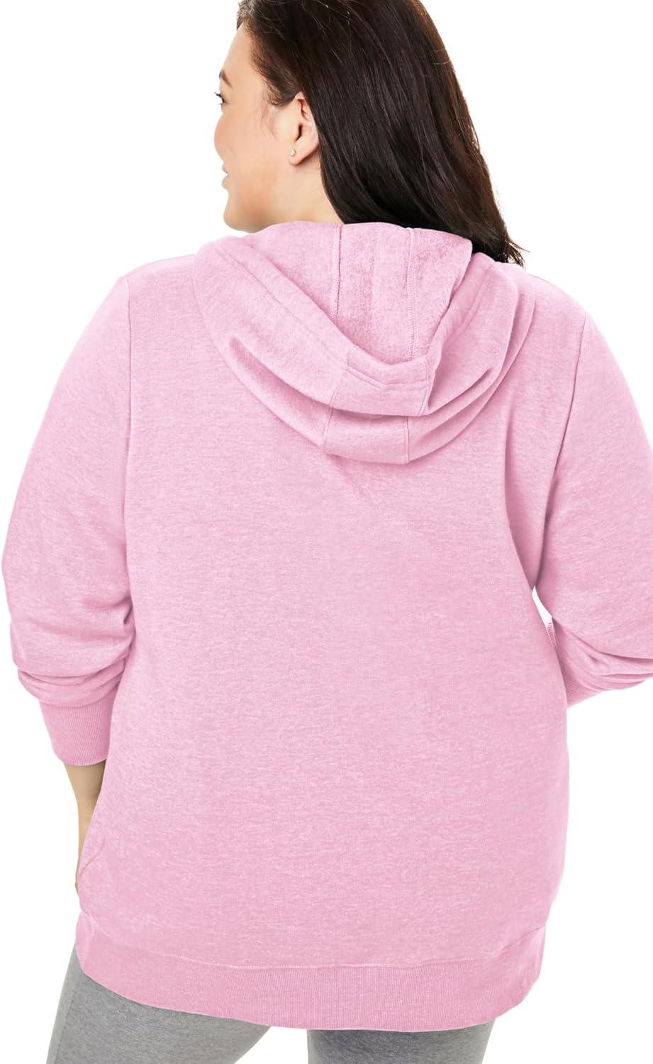 Woman Within Plus Size Better Fleece Zip-Front Hoodie Long Oversized Sweatshirt(Pink)