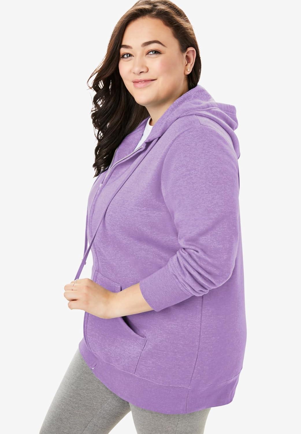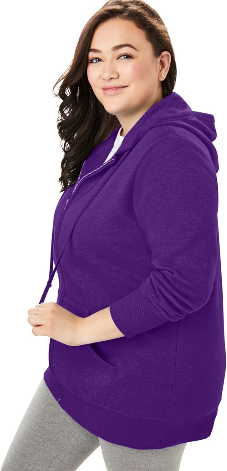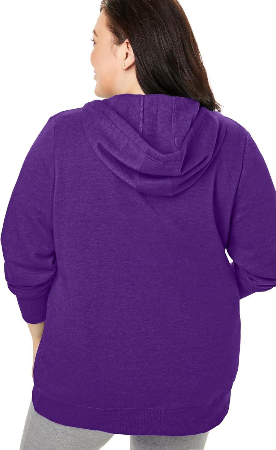 Woman Within Plus Size Better Fleece Zip-Front Hoodie Long Oversized Sweatshirt(Radiant Purple)