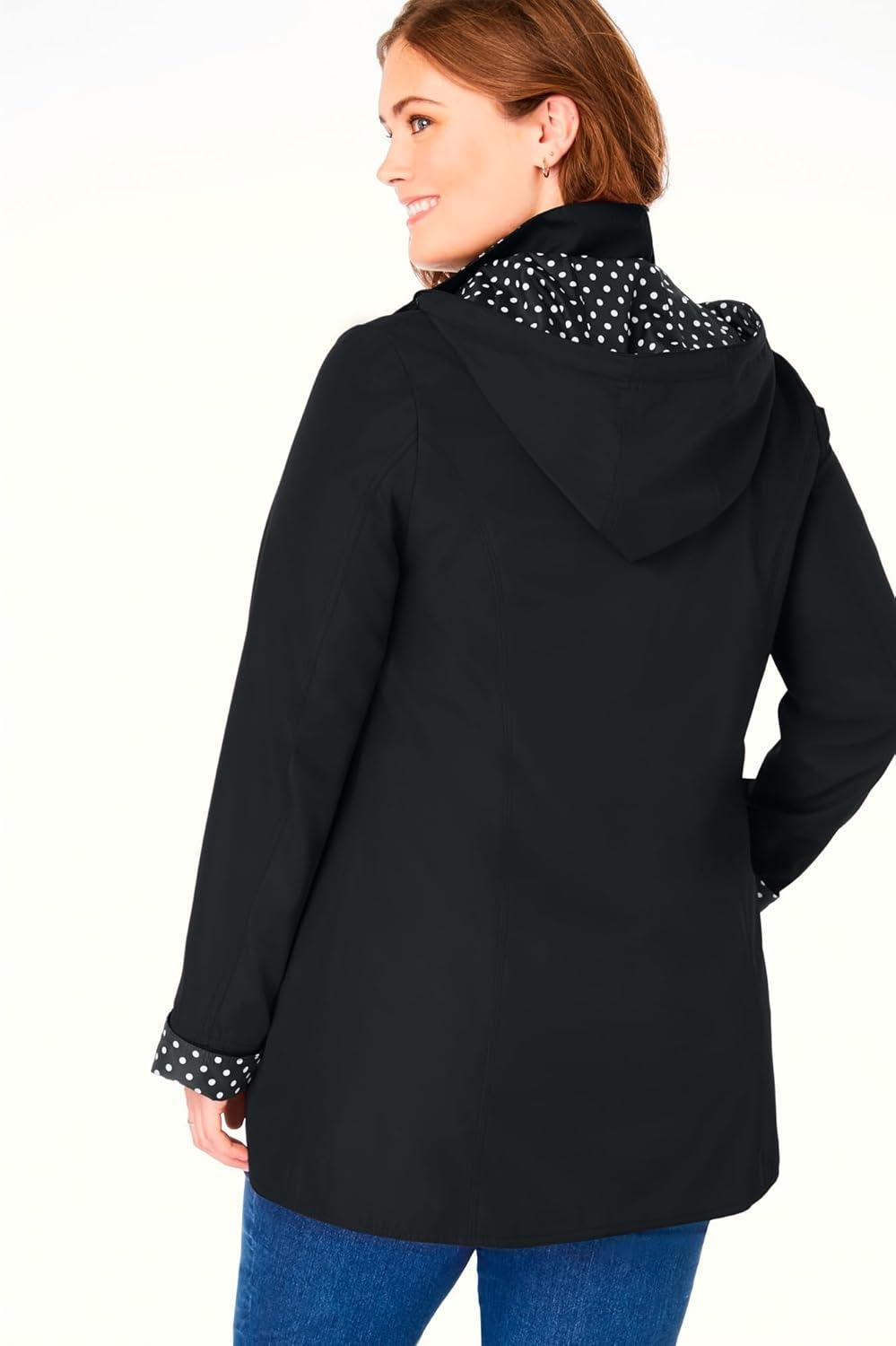 Woman Within Plus Size Dot Trim Raincoat(Black)