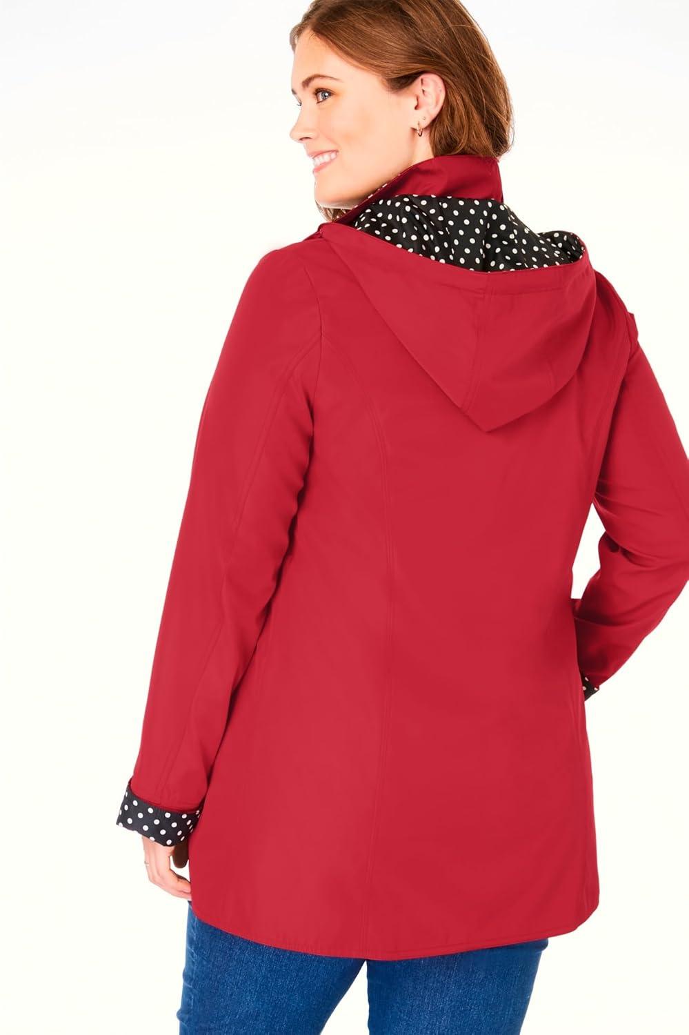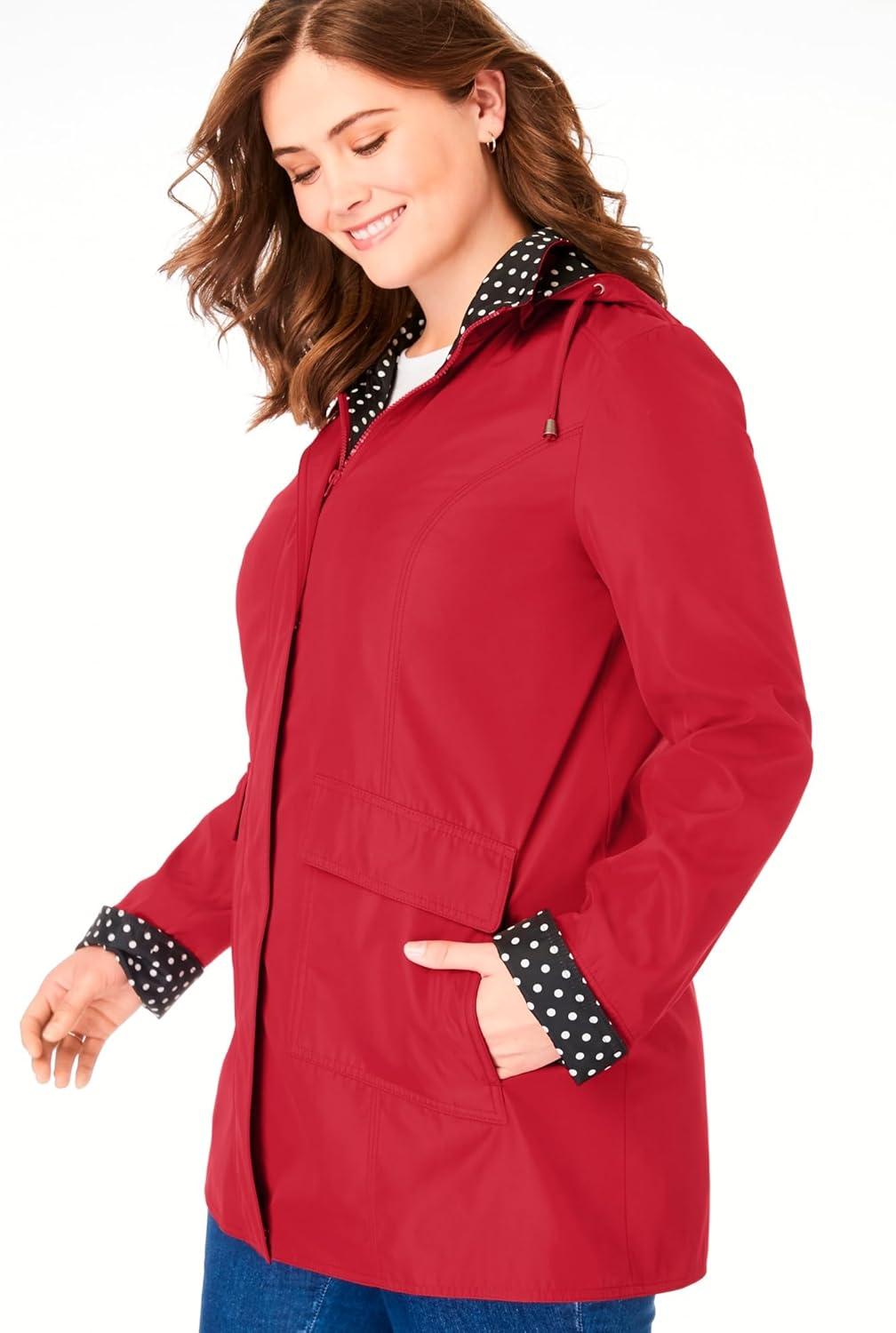 Woman Within Plus Size Dot Trim Raincoat(Classic Red)