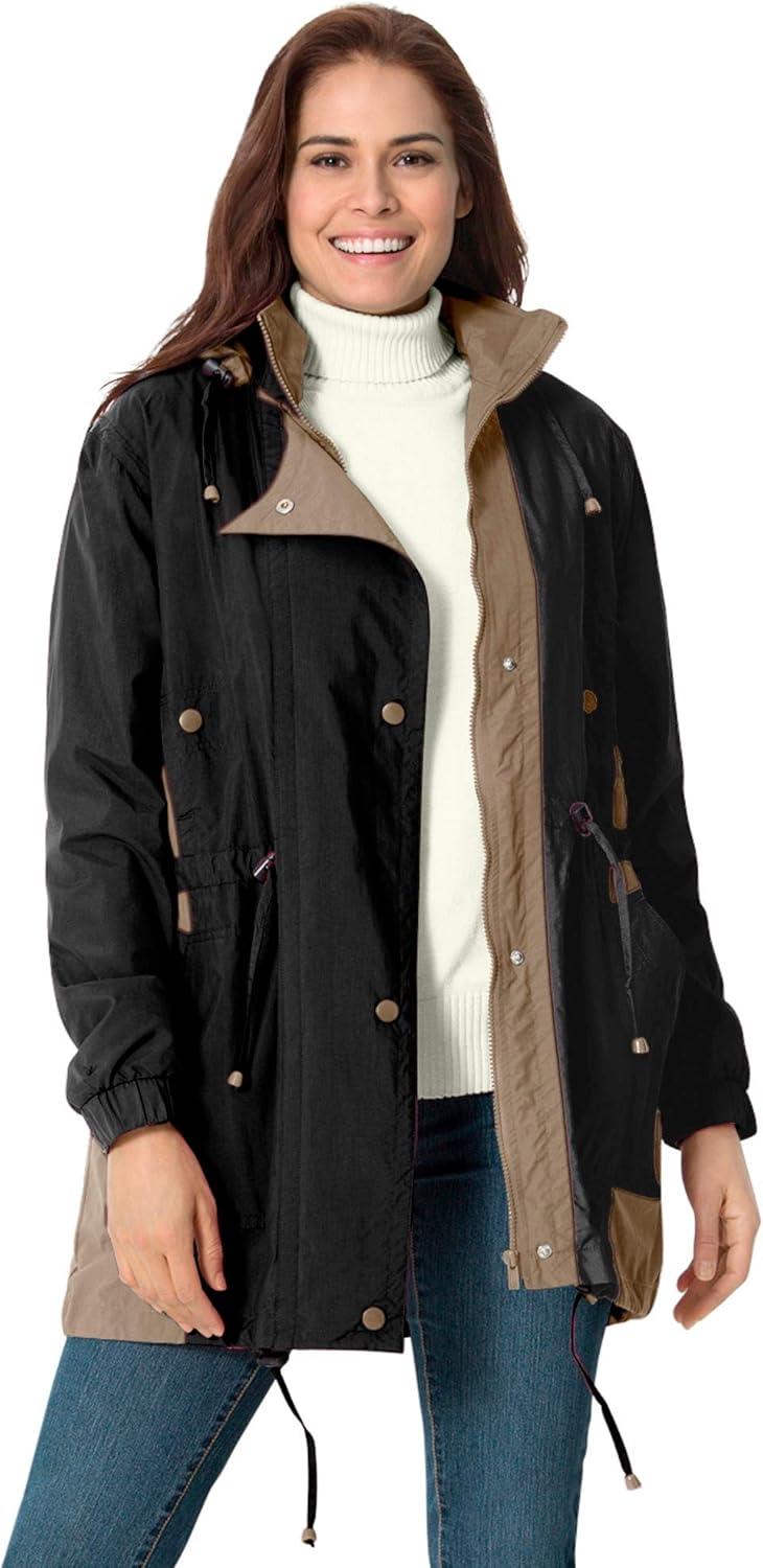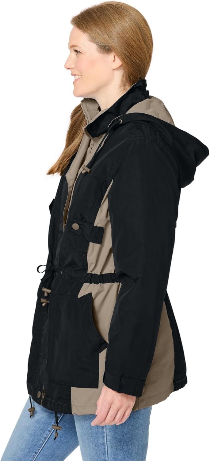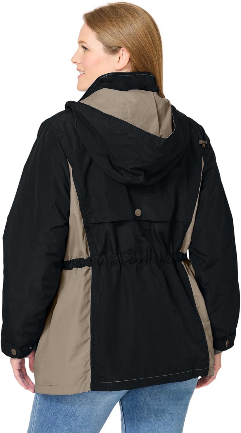 Woman Within Plus Size Colorblocked Taslon Anorak(Black Bark)