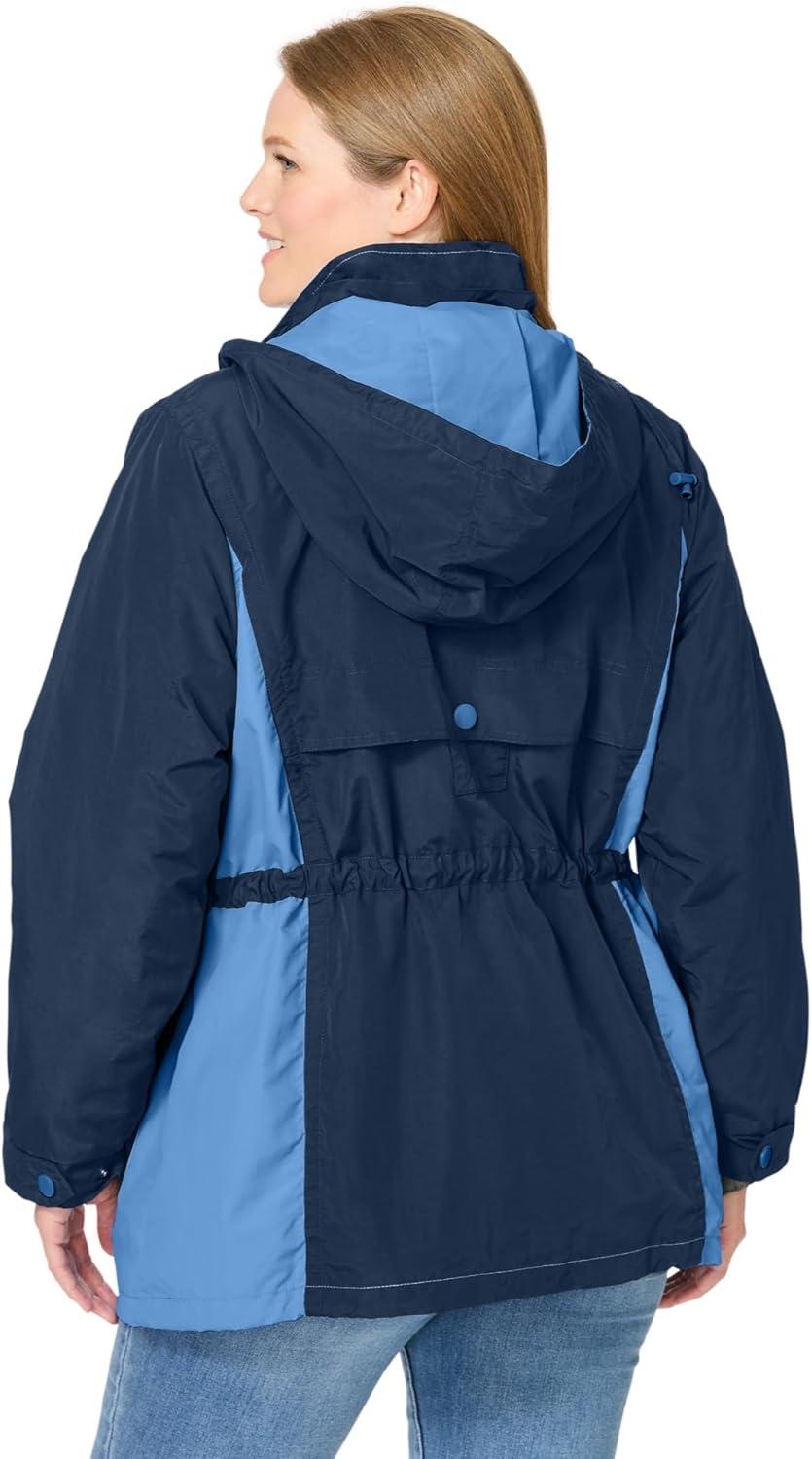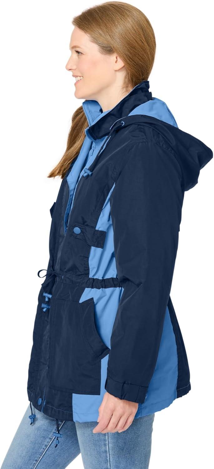 Woman Within Plus Size Colorblocked Taslon Anorak(Navy French Blue)