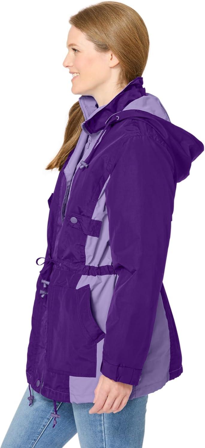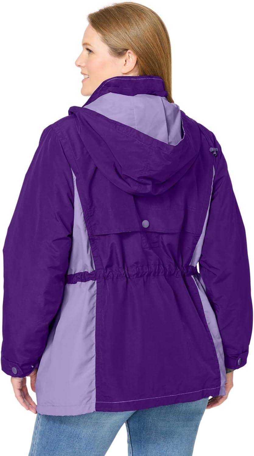 Woman Within Plus Size Colorblocked Taslon Anorak(Radiant Purple Soft Iris)