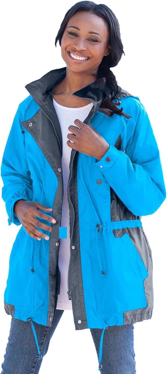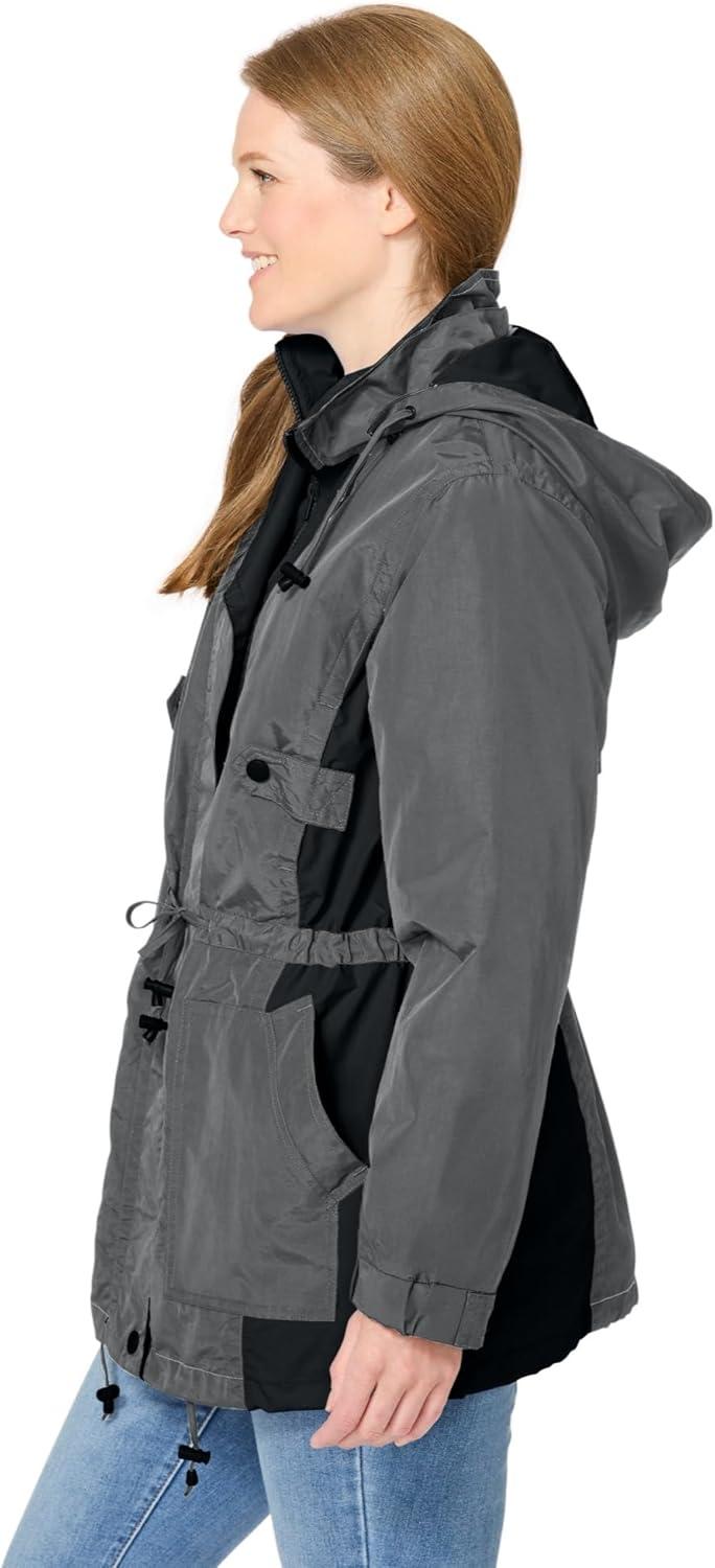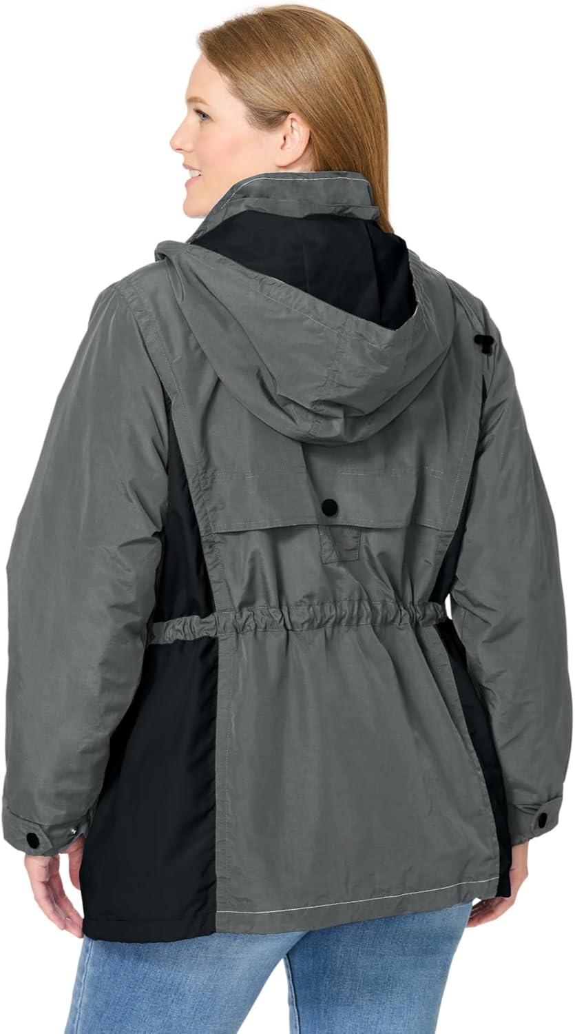 Woman Within Plus Size Colorblocked Taslon Anorak(Slate Black)