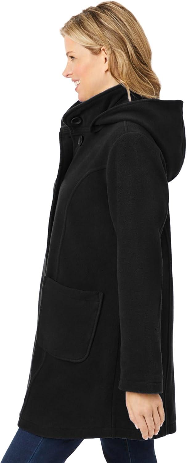 • Woman Within Plus Size Hooded A-Line Fleece Coat(Black)