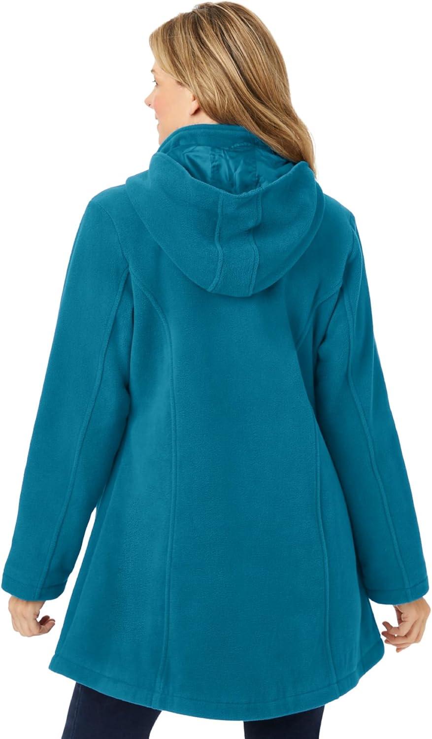 • Woman Within Plus Size Hooded A-Line Fleece Coat(Deep Teal)