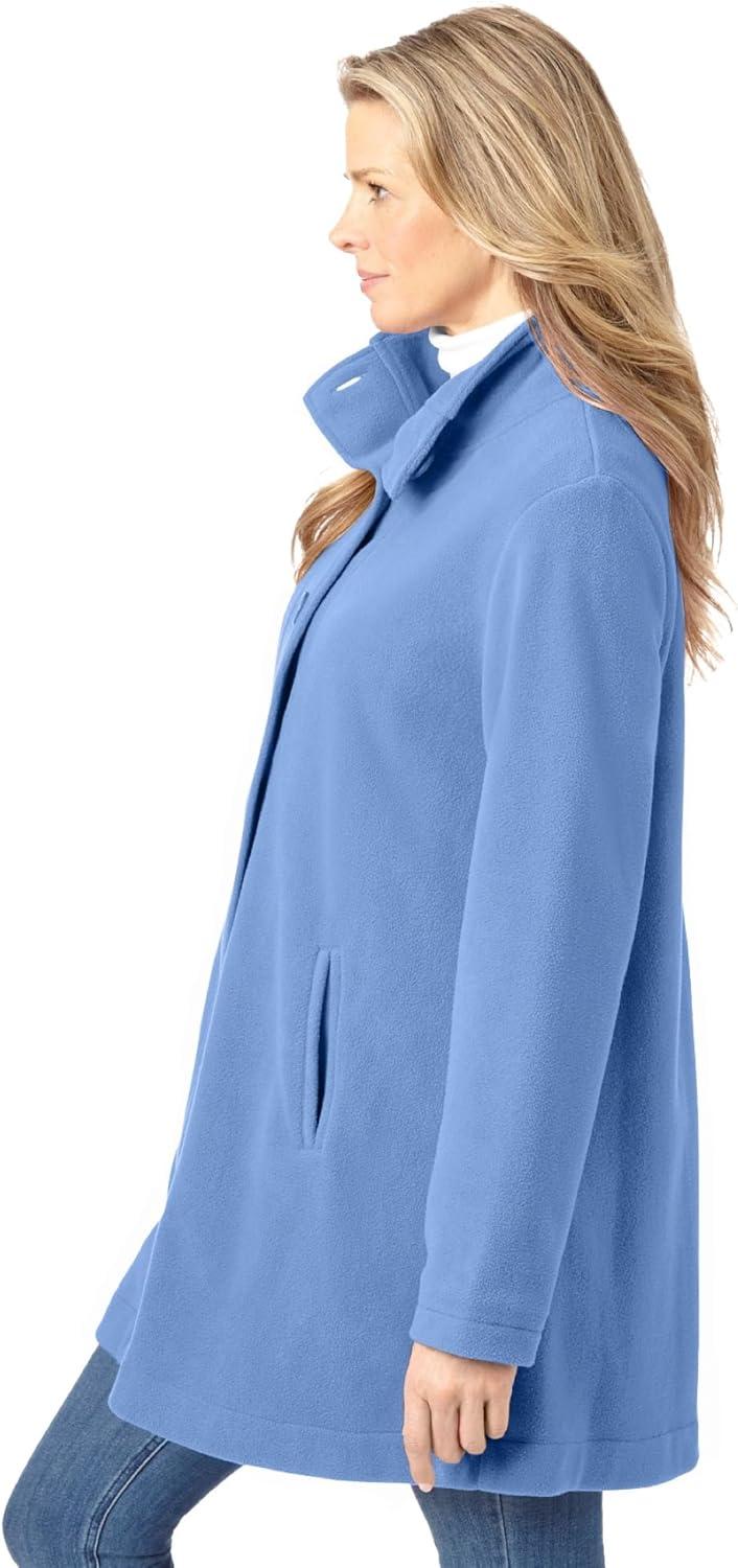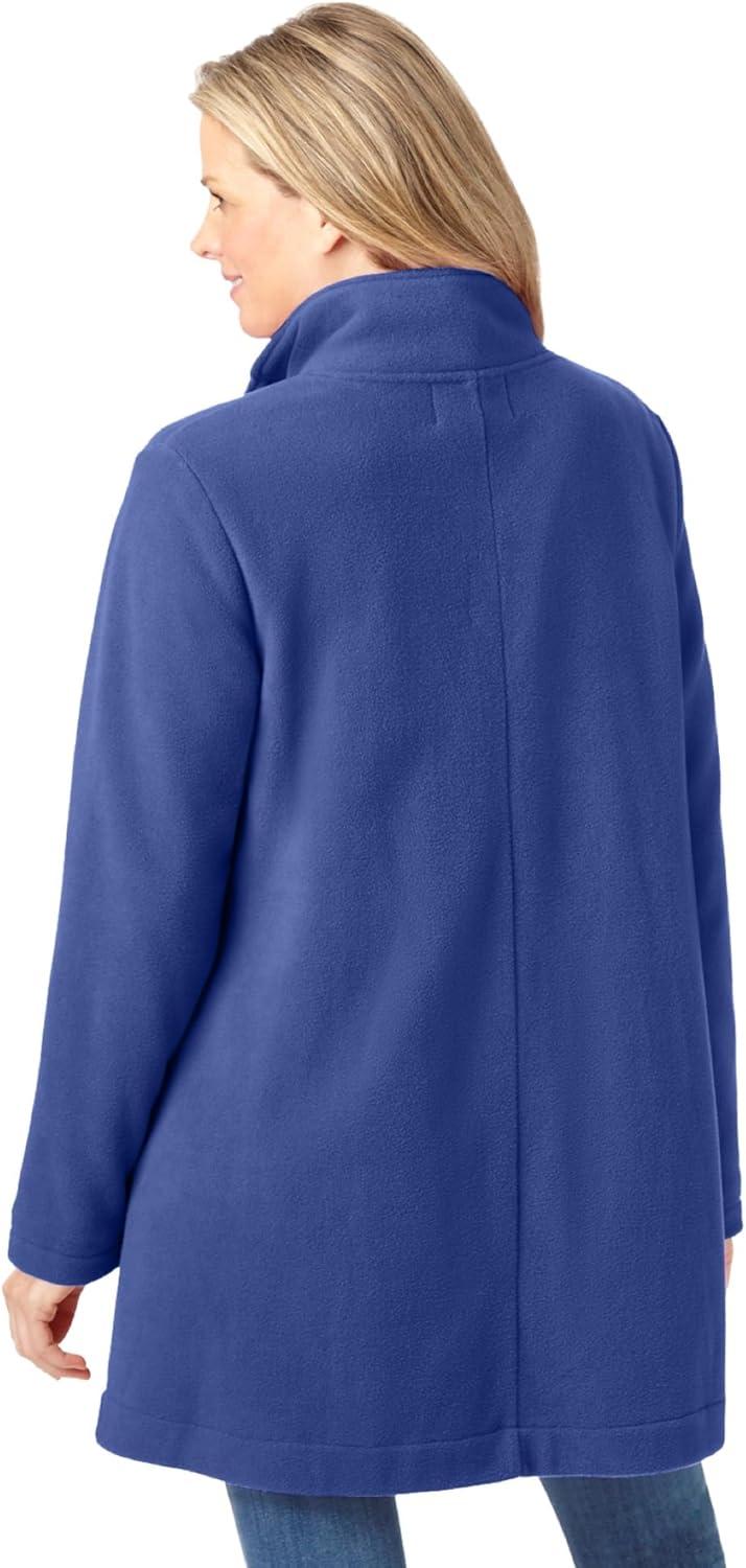 Woman Within Plus Size Fleece Swing Funnel-Neck Coat(Ultra Blue)