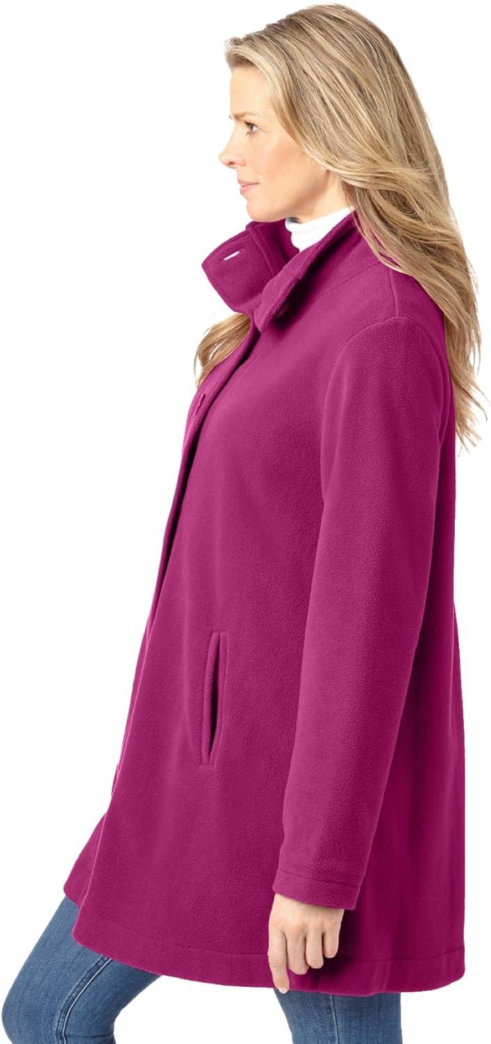 Woman Within Plus Size Fleece Swing Funnel-Neck Coat(Raspberry)