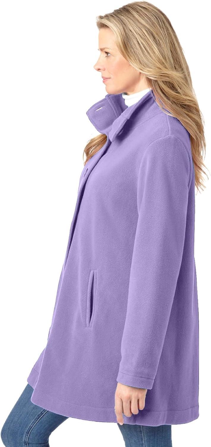 Woman Within Plus Size Fleece Swing Funnel-Neck Coat(Soft Iris)