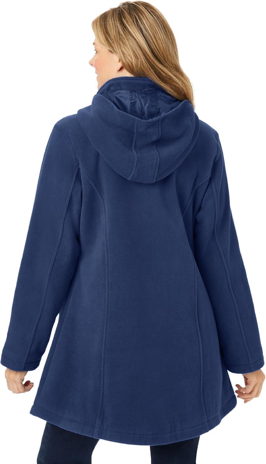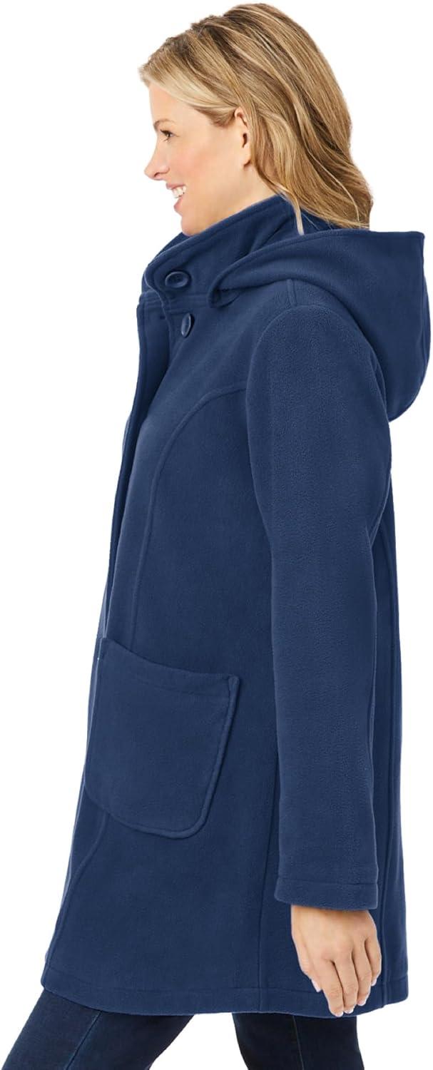 • Woman Within Plus Size Hooded A-Line Fleece Coat(Navy)
