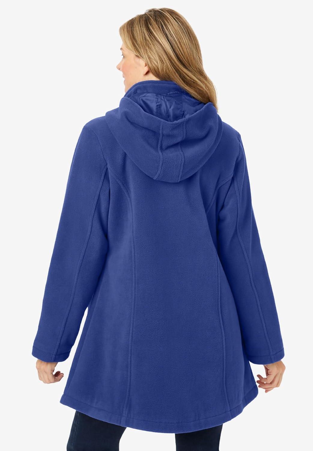 • Woman Within Plus Size Hooded A-Line Fleece Coat(Ultra Blue)